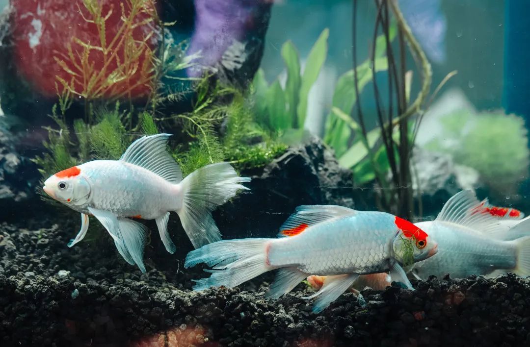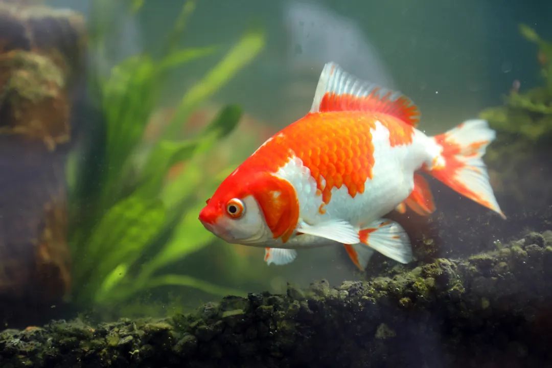 红白和金,由明代中国传入日本的红草金鱼中培育而来,纺锤形身材,红白颜色鲜艳,各鳍条短小,尾鳍4尾,适应能力强,容易饲养。
