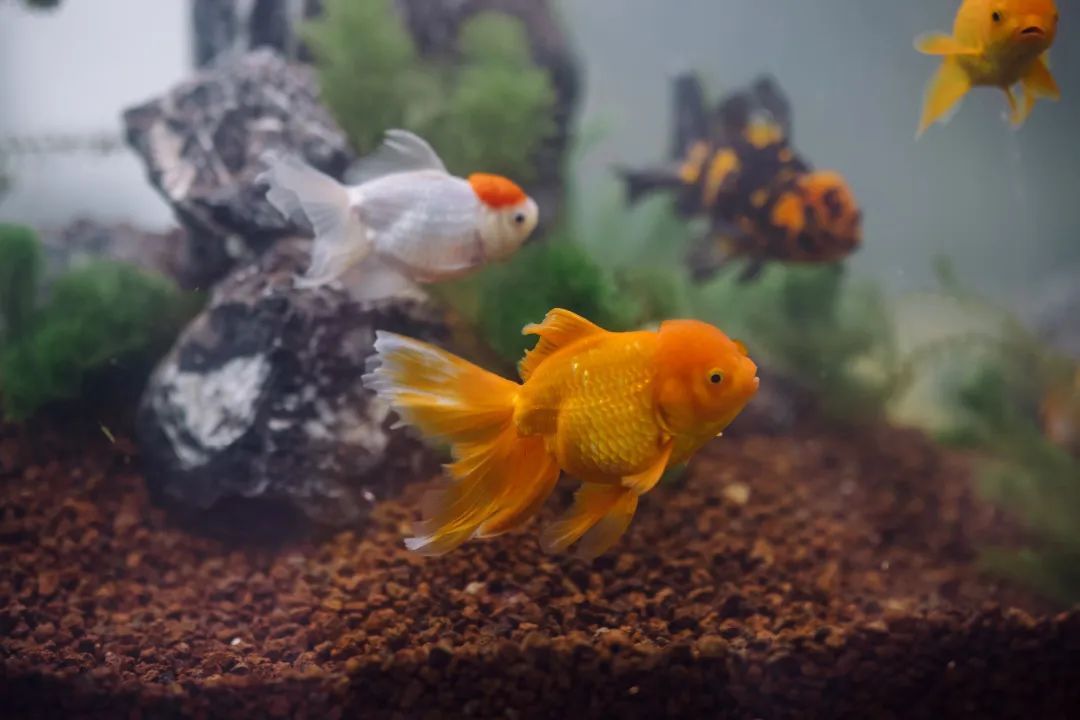 红琉金鱼,嘴尖腹圆,头部平坦无肉瘤,体型短圆,抗病能力强,饲养容易。颜色丰富有红,红白,五花等。谐音“留金”之意,很受人们的欢迎。