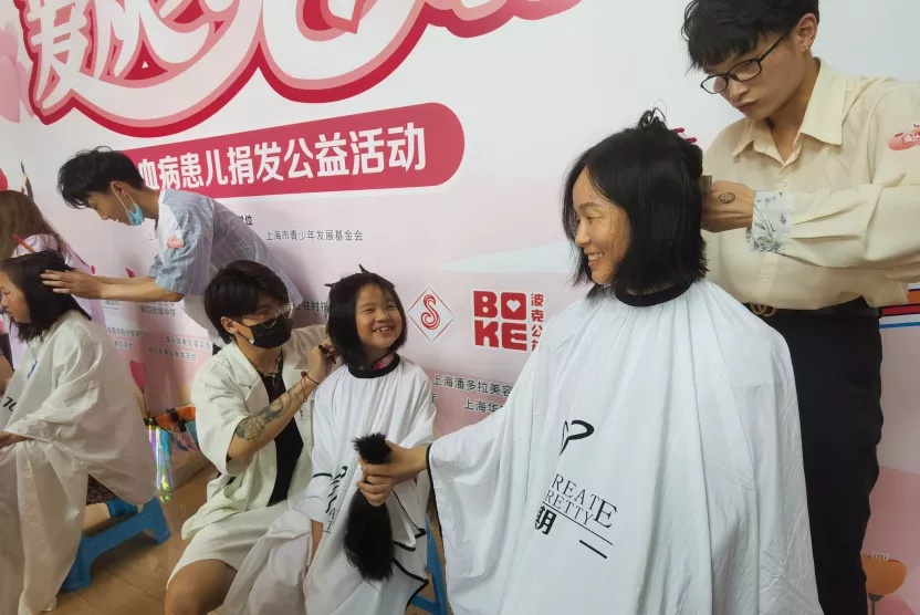 为了满足患儿的心愿,自2016年起,华师大四附中携手上海市儿童医院,联合上海广播电台、美发美容协会、爱心企业一起,在每年初三毕业季发起捐发公益活动。活动募集的秀发,制作成发套后全部捐赠给上海市儿童医院的白血病患儿。