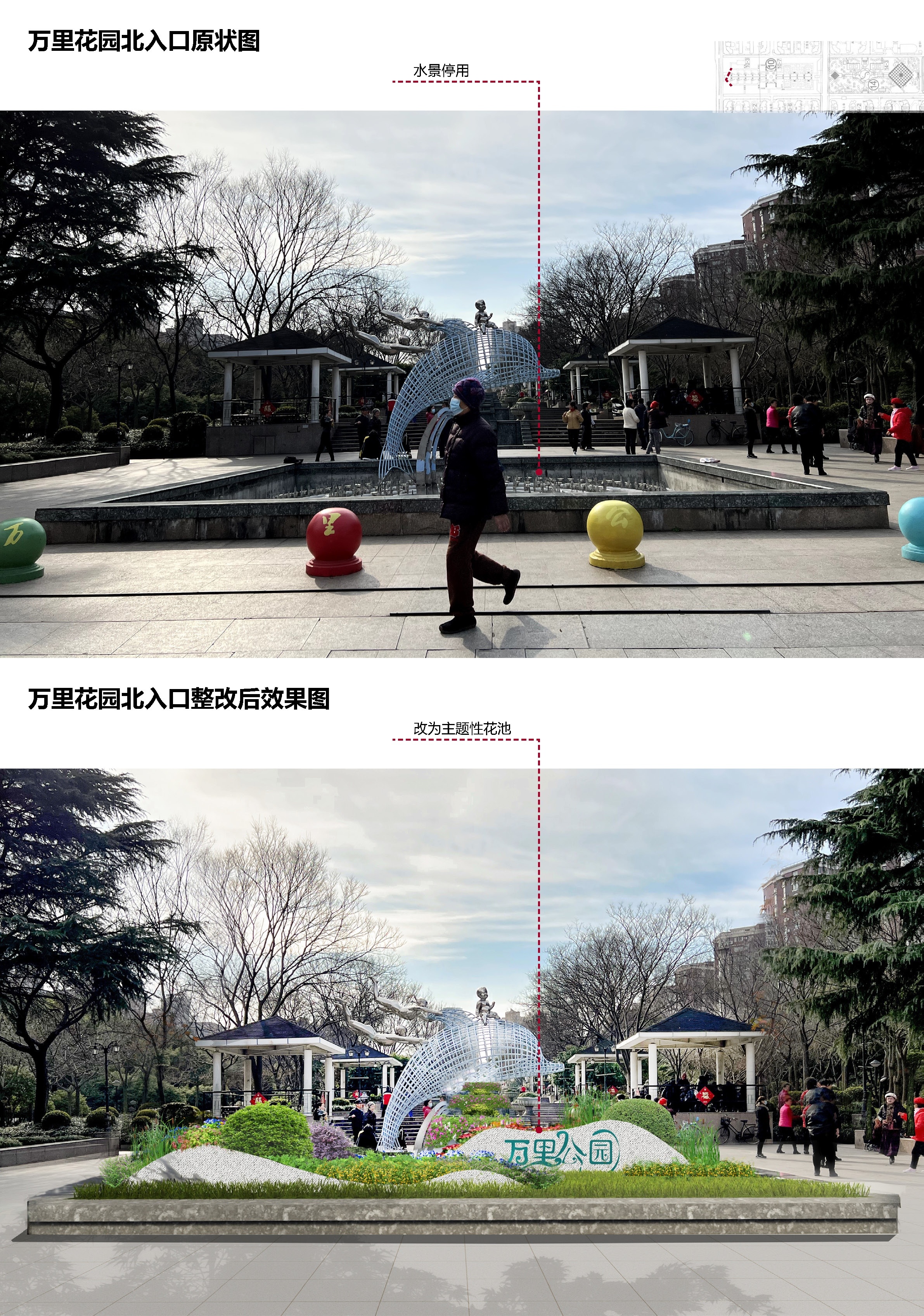 公园北大门原状及改造效果图