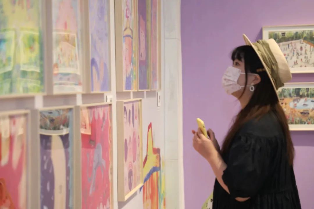 展览现场,阿毛毛带来的《花园女孩》《回南天》《购物精品店》《居民楼》等作品,有些鲜艳的色彩,基于人们熟悉的城市日常生活,迸发出爆棚的想象力。Satu Kettunen带来的《森林》《苔藓》《上树》《刺猬》等作品,则流露出对于自然的亲近。