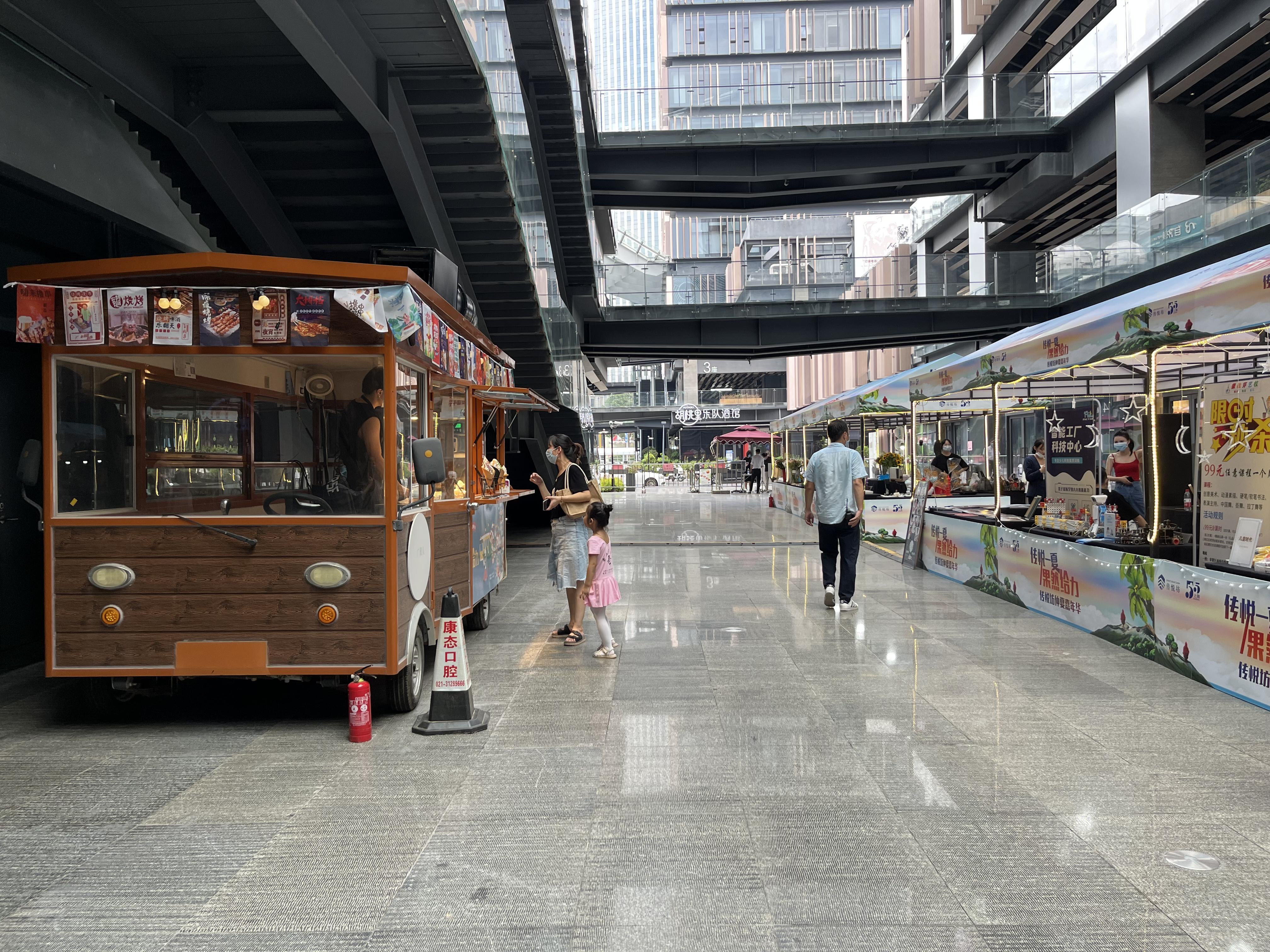 工作人员表示,考虑到天气炎热和市民逛街游玩规律,传悦坊将开市时间调整到下午4点开始,一直延续到夜晚8点左右,既满足了来商场就餐人员晚餐前的游玩需求,又符合附近大型居住社区居民餐后来逛街休闲的需求。