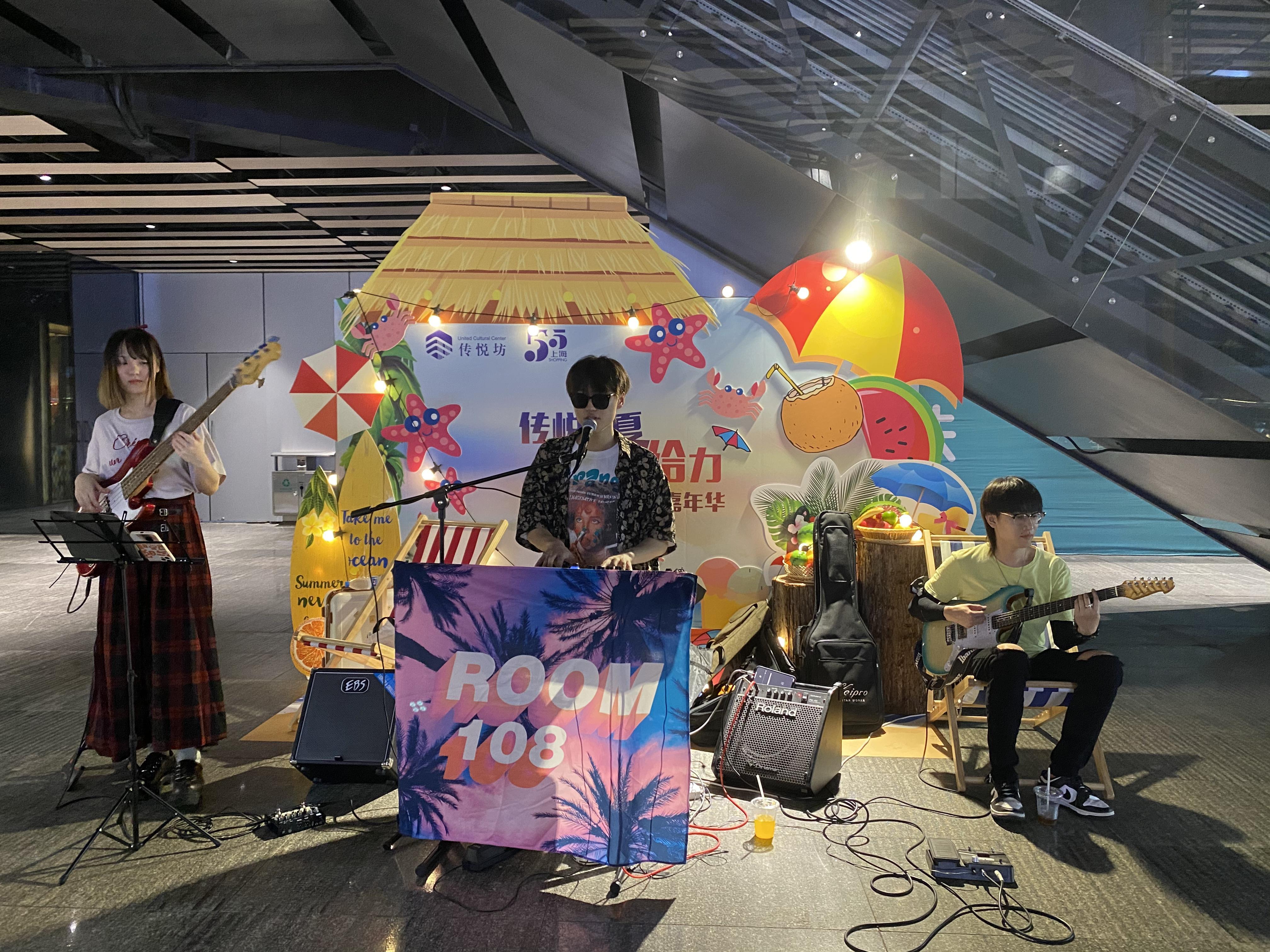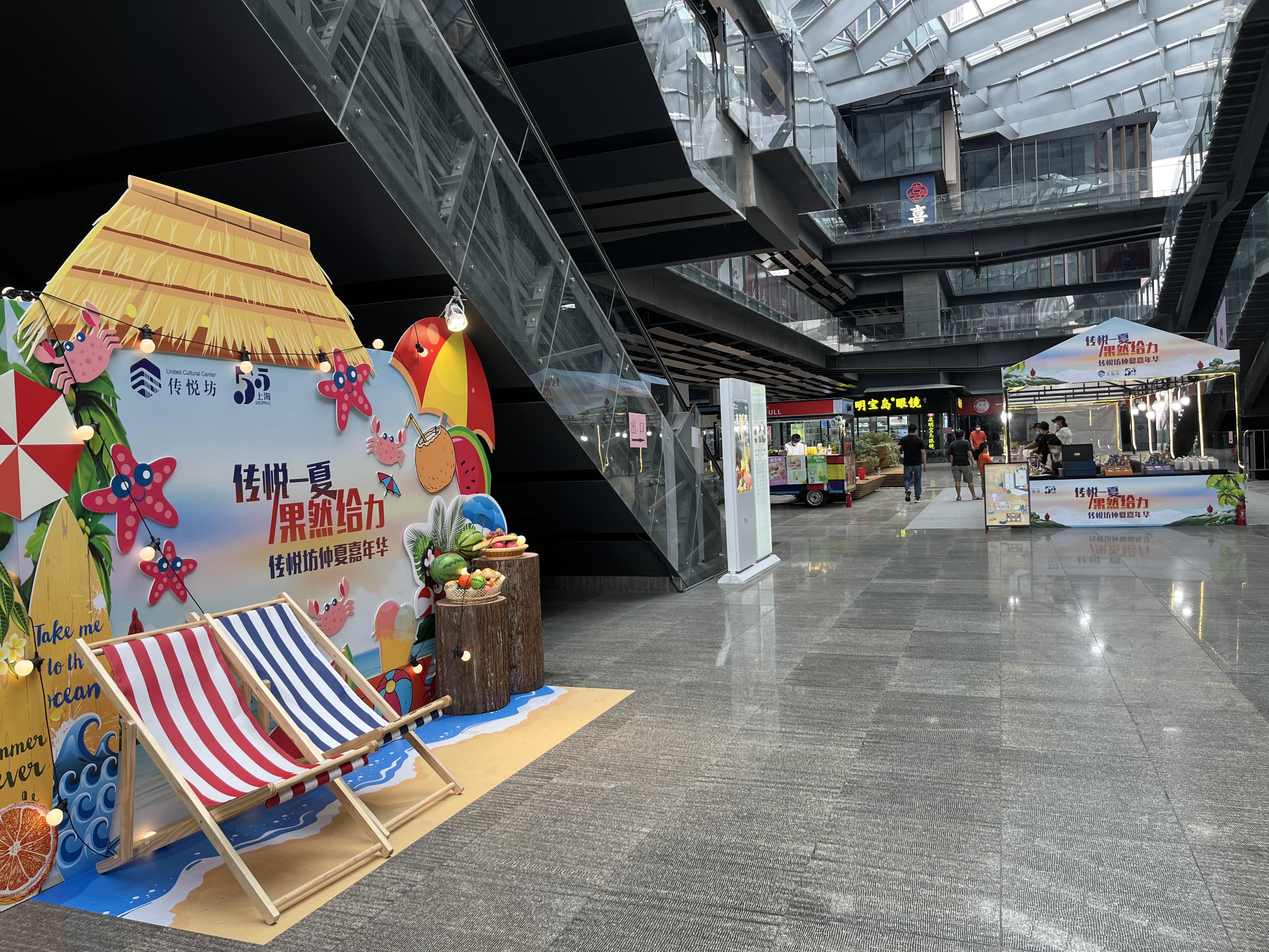 上报传悦坊营销总监张欣说:“现场有不少非遗民俗类内容,包括草编、捏泥人、还有龙凤字等,还有小朋友玩得游艺活动。包括周末的时候,我们还会请小丑表演和乐队演出,希望在这个炎炎夏日给奉贤市民带来一些清凉。”