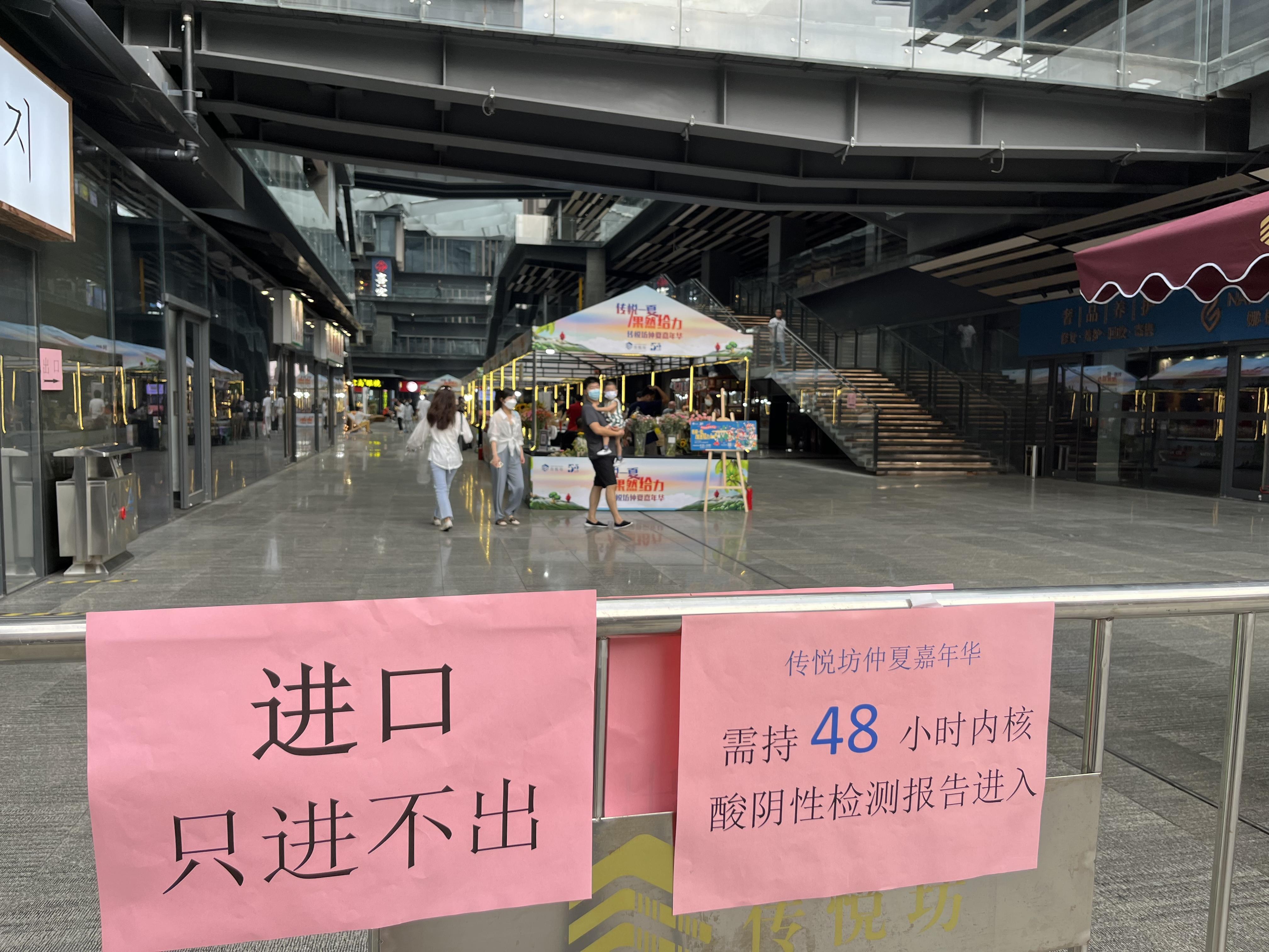 这里也要提醒市民,夜市活动出入口不同,实行单一进出通行。现场工作人员在夜市入口处将进行入场查验,落实入场人员扫“场所码”或“数字哨兵”,入场市民须持有48小时内核酸检测阴性证明,及健康码绿码,佩戴口罩,配合测量体温且无异常。