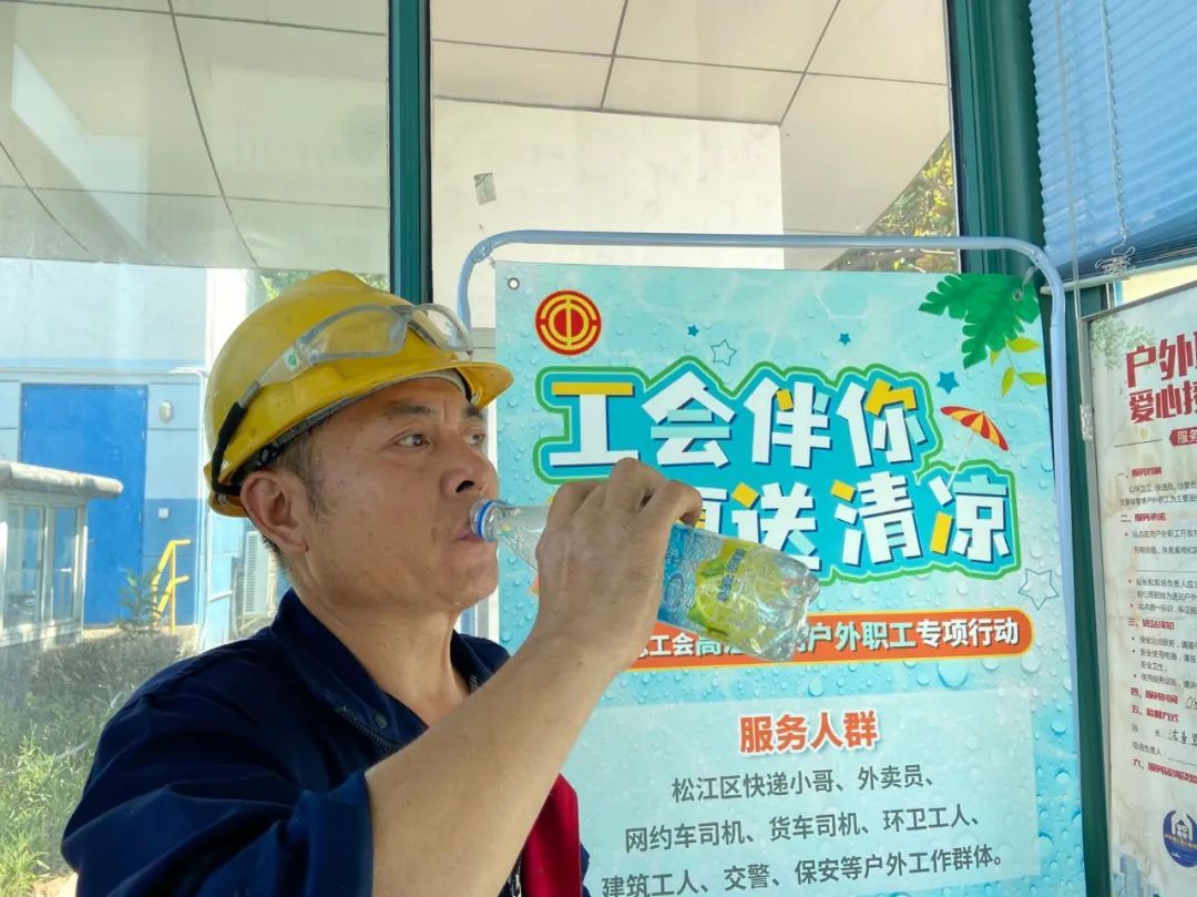 除此之外,经开区总工会还在荣乐东路301号、美能达路503号和阿克苏诺贝尔户外职工爱心接力站三个常态化站点准备了盐汽水、矿泉水等防暑降温物资,供户外工作者免费自取。8月19日上午,净达公司的环卫工人陆火生经过阿克苏诺贝尔户外职工爱心接力站时,将环卫车停下来,进接力站自取了一瓶盐汽水,仰头咕咚咕咚喝了起来。“有了这个爱心接力站点,我们环卫工人经过这里可以休息一下,凉快一会儿,很满足了。”陆火生说。
