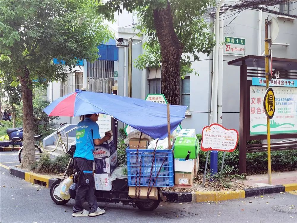 △在梅陇十村,同属“菜鸟”系的“菜鸟直送”就能做到送件上门,快递员称送上门是“硬要求”。