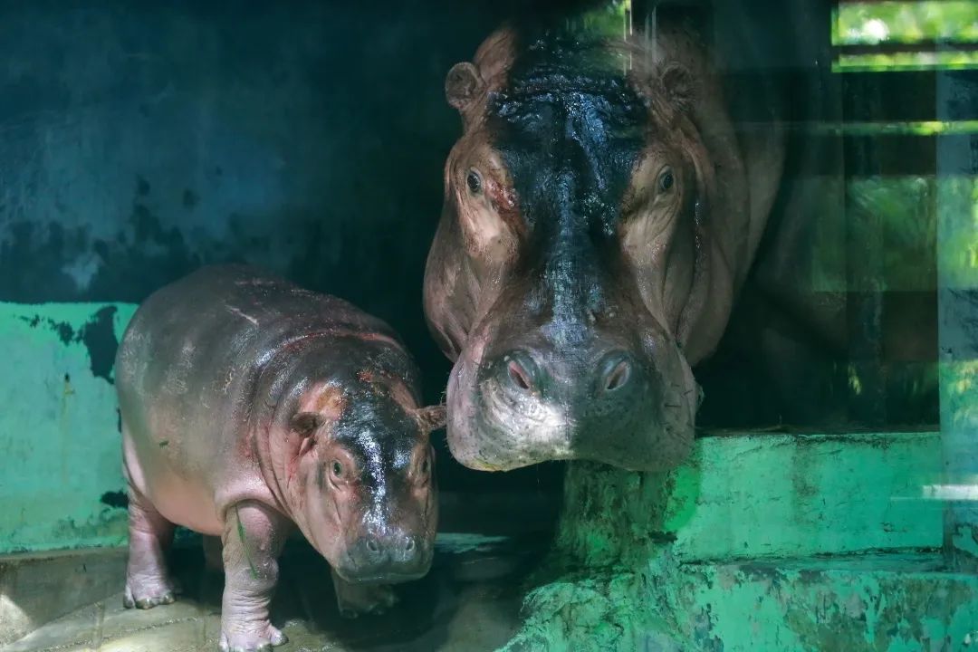 6月23日下午1点左右,河马妈妈“小东西”经过5个小时的漫长生产,顺利产下一雄性幼仔。母河马的孕期一般为210-255天,每胎产1仔。刚出生的小河马体重为30-40kg左右,四肢短小结实,身体像圆桶般。