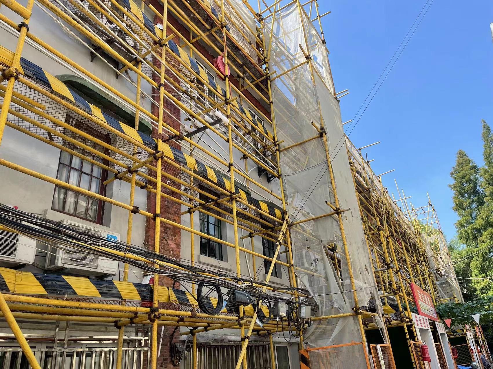 在施工负责人宋红生带领下,记者走进了33街坊二期,眼前多为三层楼砖木结构建筑,由于住宅内居住户数较多,使用年限较长,内部破损,墙面开裂,屋面渗漏水,整体房屋状况欠佳。“房屋类型包括了新式旧里、花园洋房等,共计18幢,共计402户居民。其中,南昌路127弄、茂名南路159弄、瑞金二路48弄均属于不可移动文物保护点。”