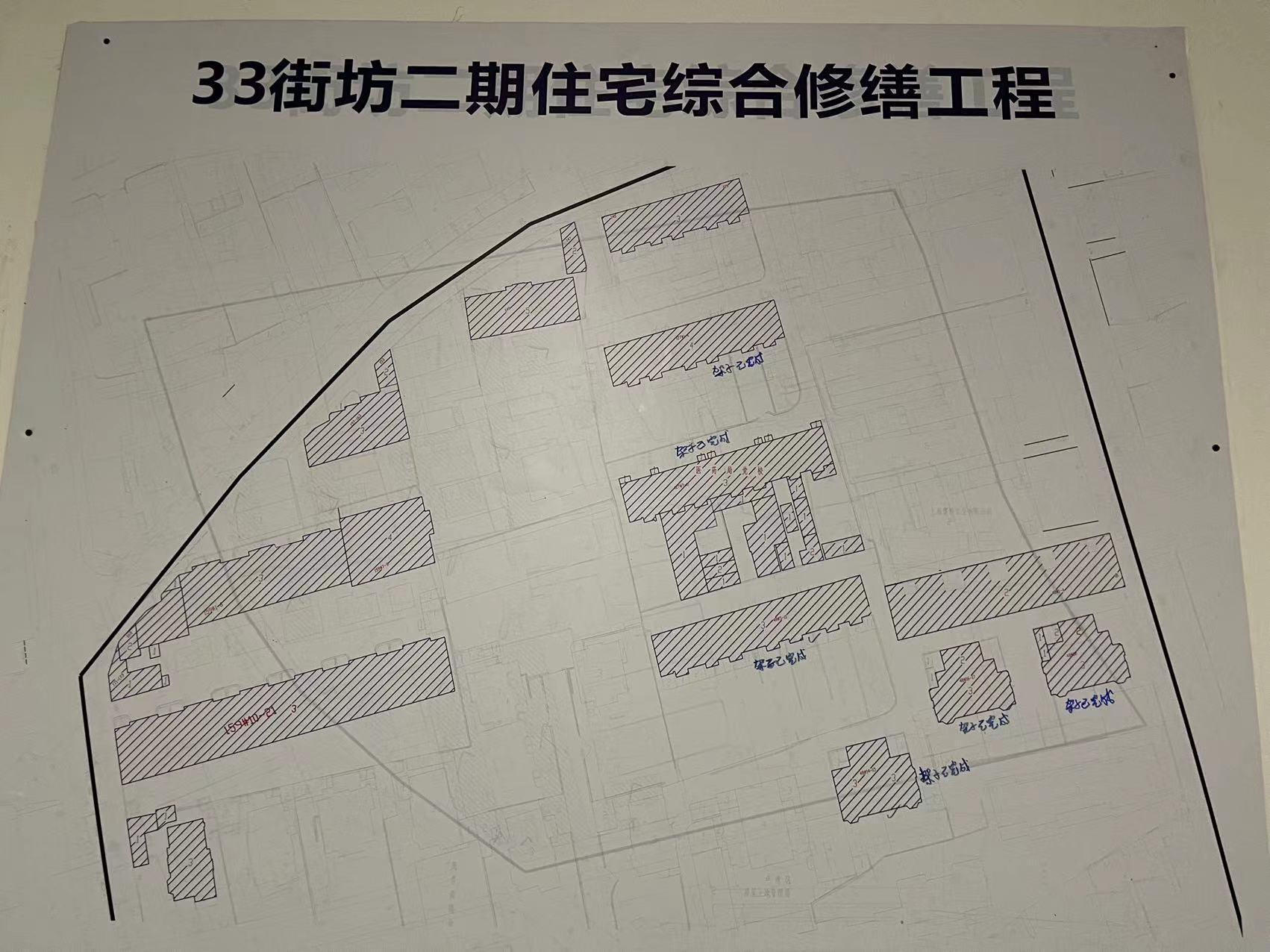 相对于只有90多户居民的自忠路414-454号,总建筑面积达两万多平方米的33街坊二期,修缮牵涉到的房屋类型更复杂、居民户数也更庞大。