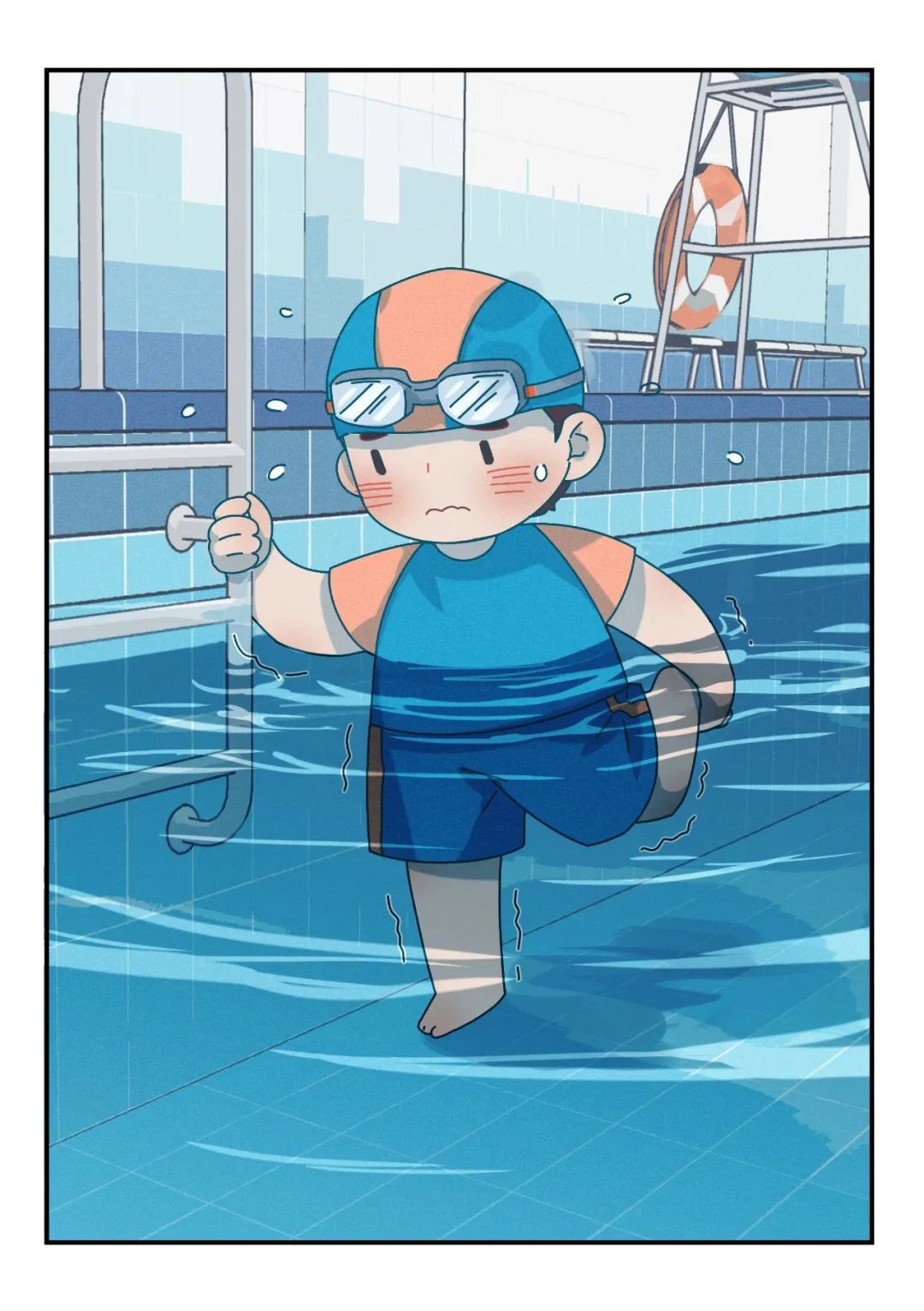 1)感觉到有寒意/发冷或将有抽筋现象 (肌肉短时痉挛后自行缓解)时,应立即上岸,避免出现低体温或抽筋进而导致溺水;