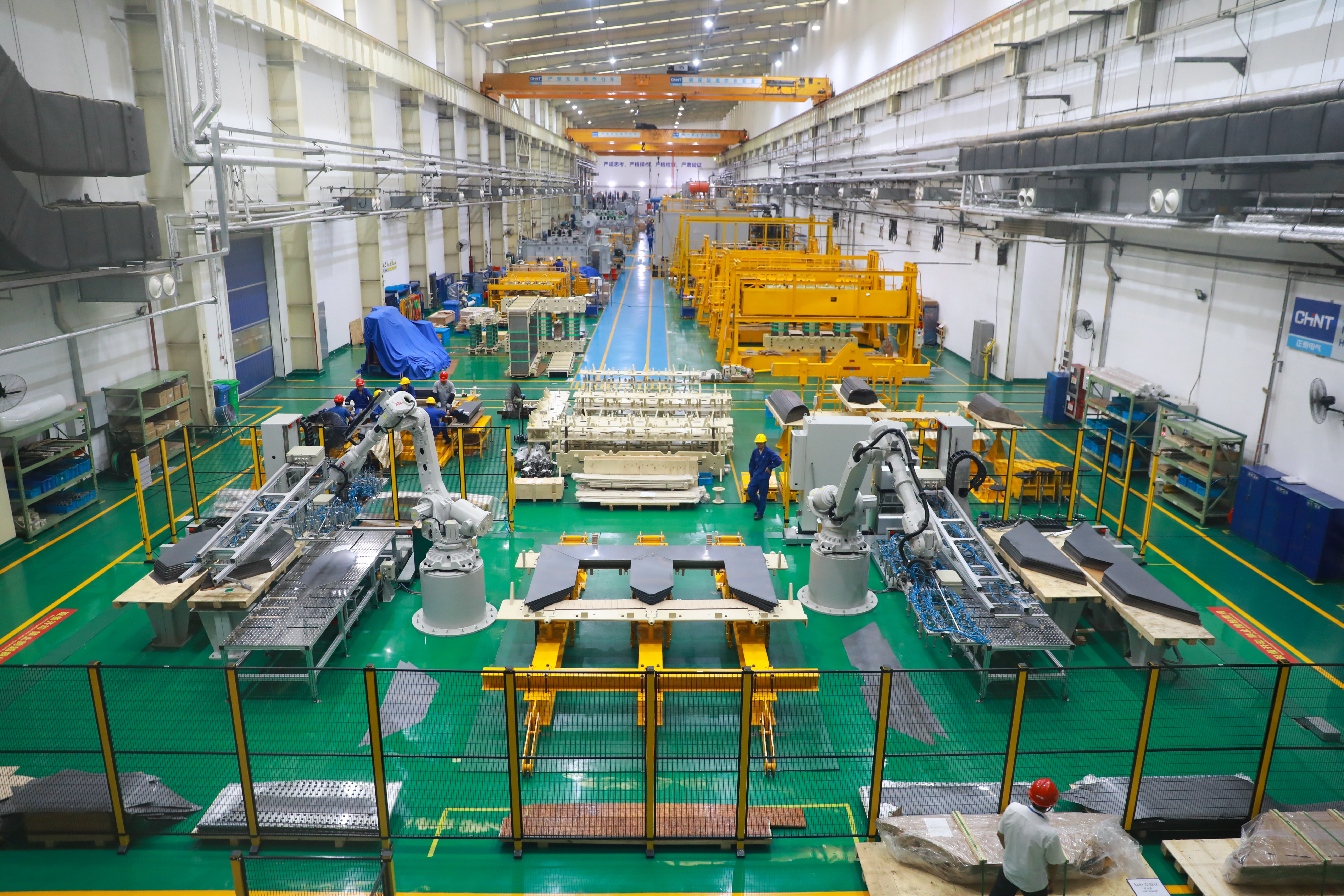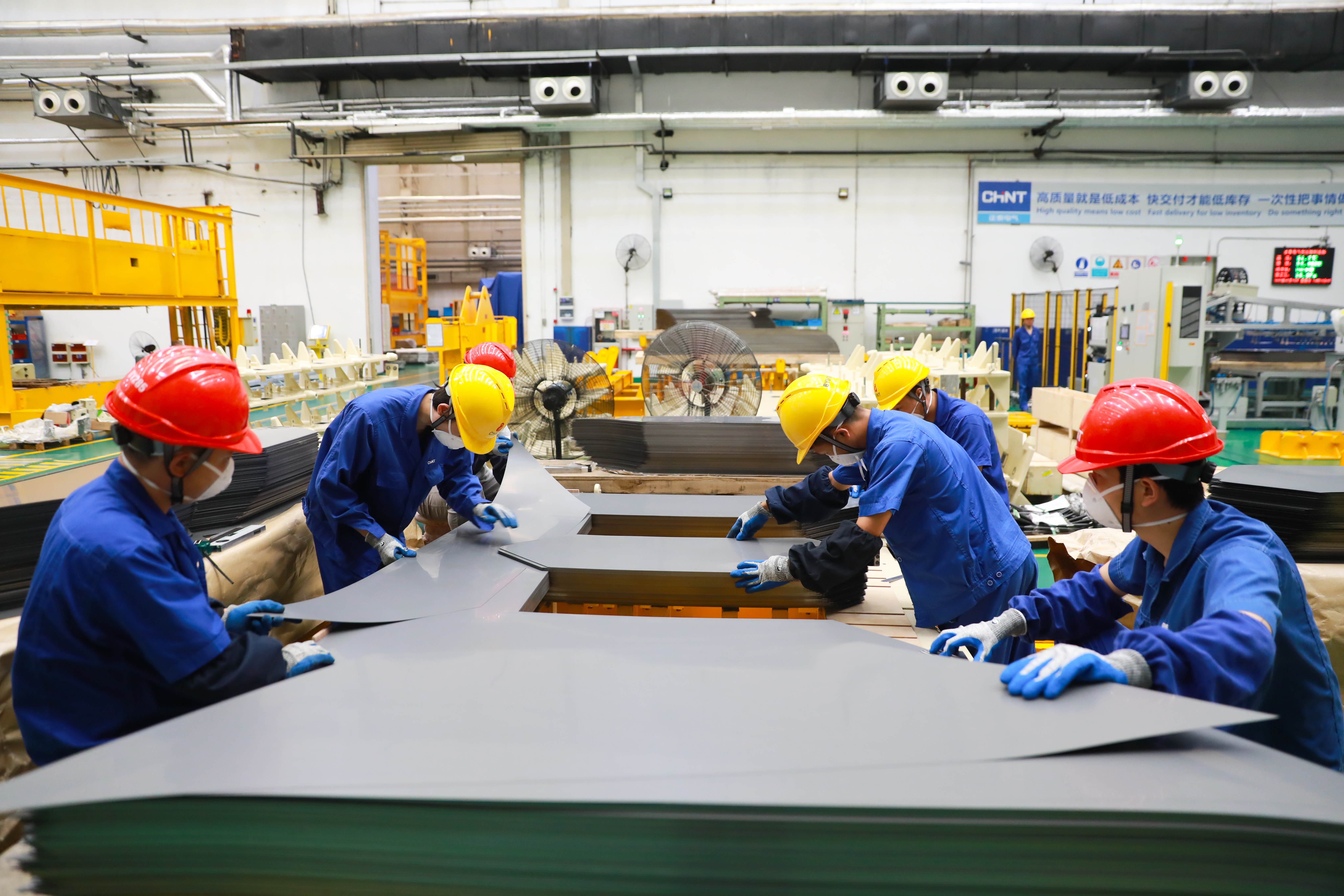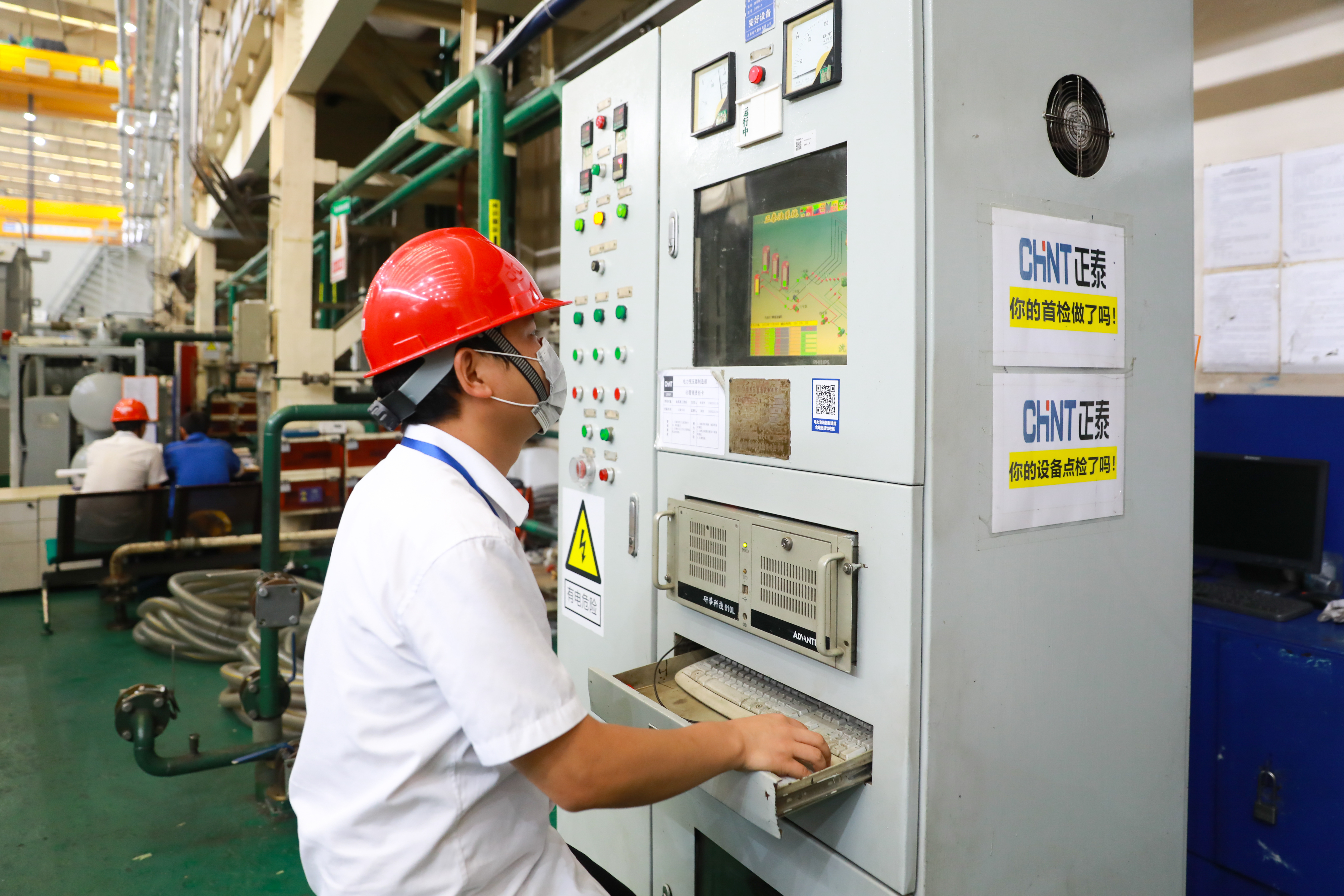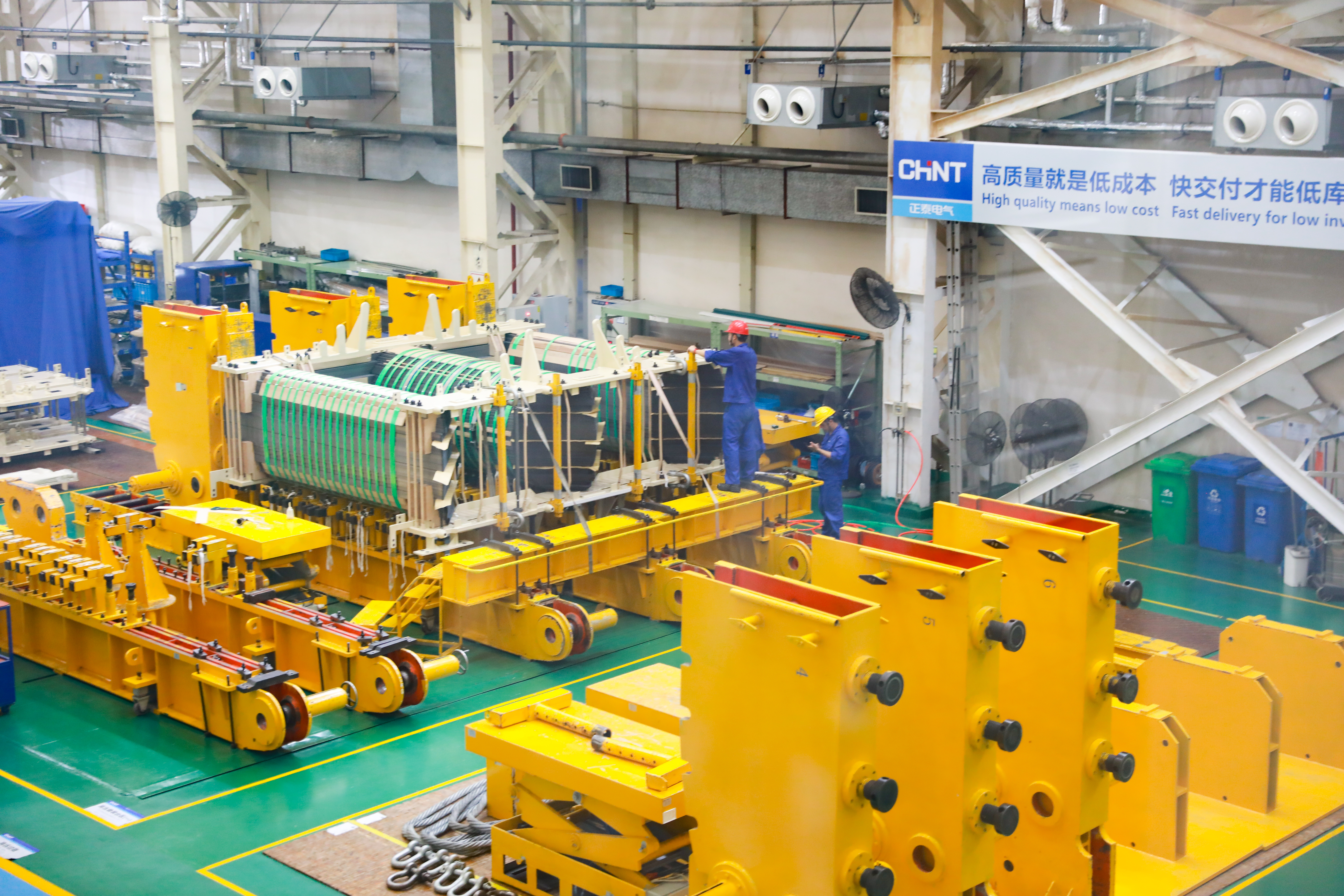 国家高新技术企业正泰电气股份有限公司是正泰集团旗下智能电气板块的核心子公司,致力于成为全球领先的智能电气与能效解决方案提供商。公司主营业务包括高低压成套开关设备、箱式变电站、自动化设备、高中压变压器、开关元件、电线电缆等产品的生产销售,以及电力工程的设计与安装。图为车间工作场景。