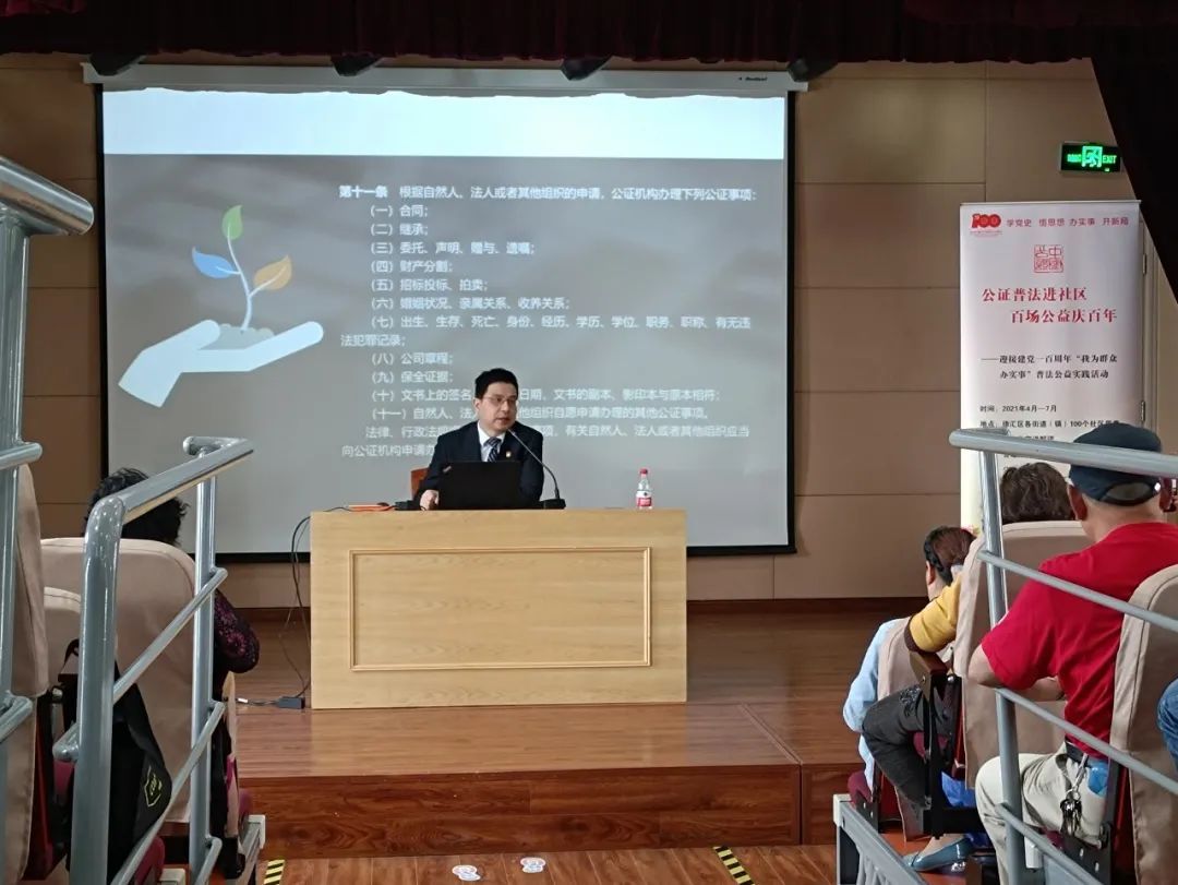 加强党建凝聚思想,通过多形式主题活动,凝聚队伍提共识,以党建促队建。特别是在2021年4月初,潘浩带领支部成员,把“我为群众办实事”实践活动作为贯穿党史学习教育全过程的抓手,依托坚持多年的公证联络员,举行“公证普法进社区 百场公益庆百年”的主题活动。