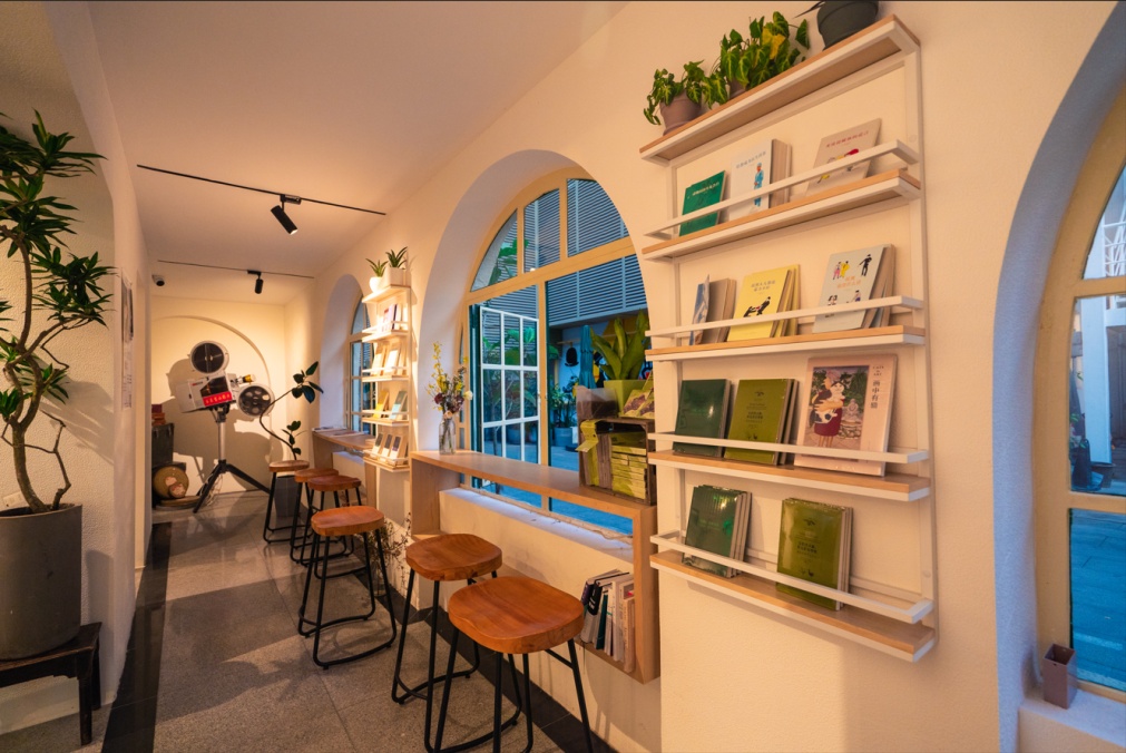 同样开设在黑石公寓一楼的幸福集荟,是一家音乐书店。在店内专辟的黑胶空间里,可以选择试听海内外各式各样的经典黑胶唱片噢!更令人惊喜的是,只要成为胶集黑胶文化共享图书馆的会员,就能把黑胶唱片借回家了!