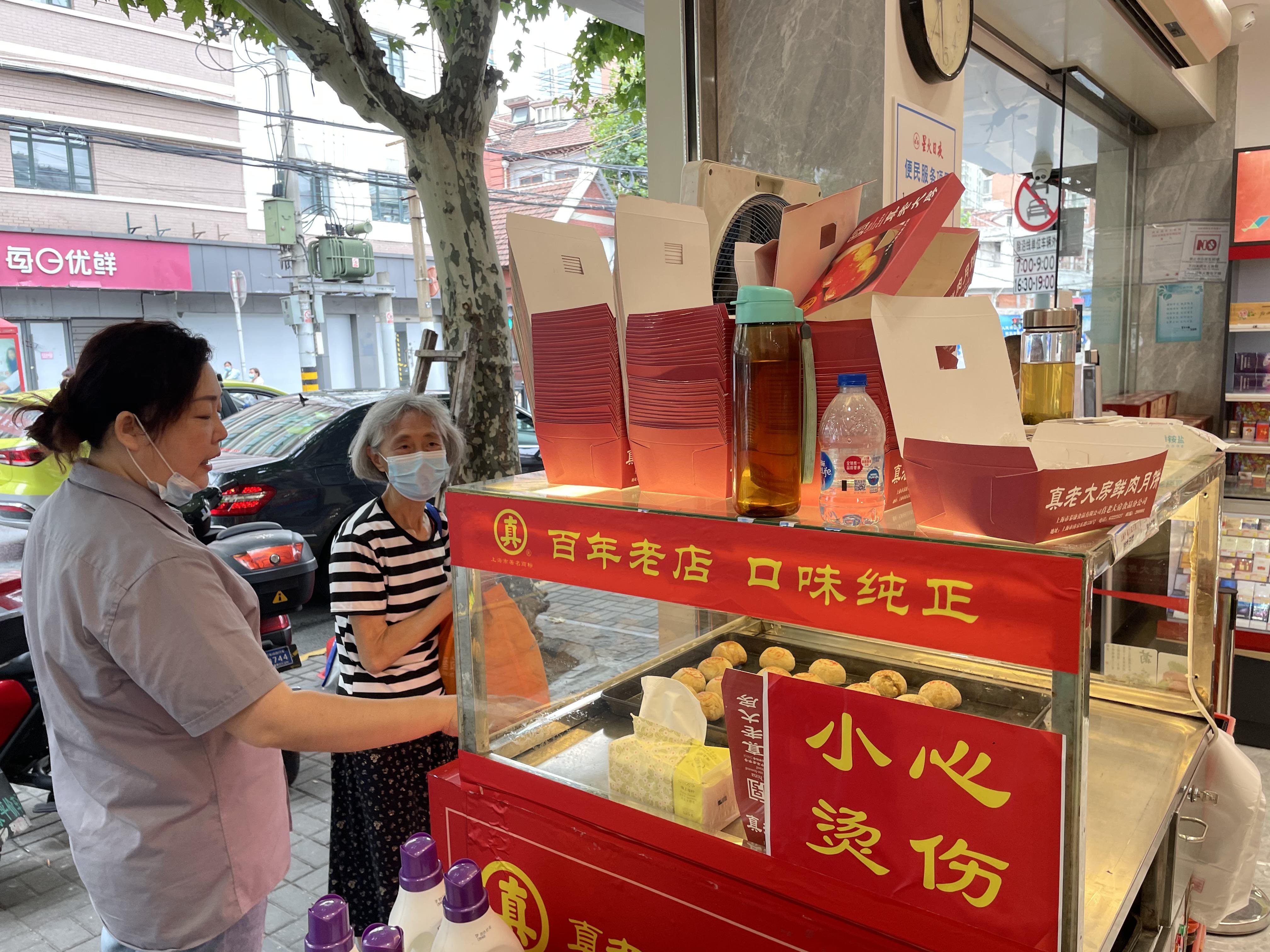 虽然才开业,但已有不少忠实消费者慕名而来。“其实什么也不缺,但看到开了新店,总想过来瞧瞧,毕竟买了这么多年了,很有感情,等会儿走的时候再带一盒鲜肉月饼回家。”