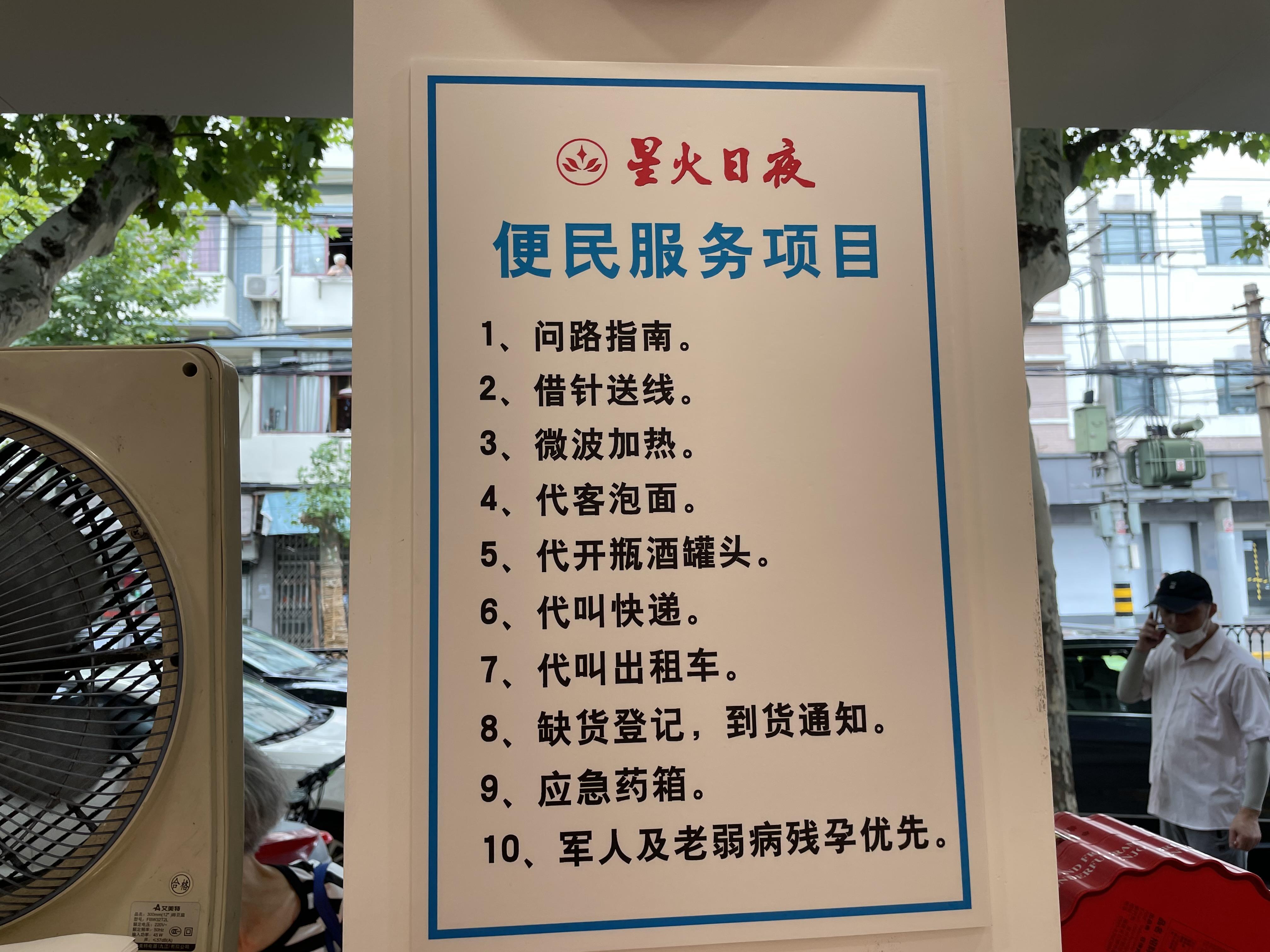 在很多人的印象中,星火的便民服务非常出名。在新店,这些服务依然会延续下去。记者注意到,问路指南、借针送线、微波加热……便民服务项目依旧醒目地张贴在墙上,该负责人表示,“商店会搬迁,商品会更新,但星火为民服务的精神,却会一直坚持下去,继续为市民留下温暖回忆。”
