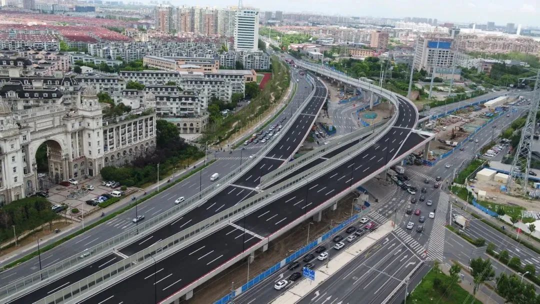 据浦东新区新闻办消息,在杨高中路改建工程(云山路-中环立交)实现主线结构贯通后,杨高中路(中环立交-金海路)改建工程跨线桥主线实现通车,并形成了独特的双“人”字形高架系统。