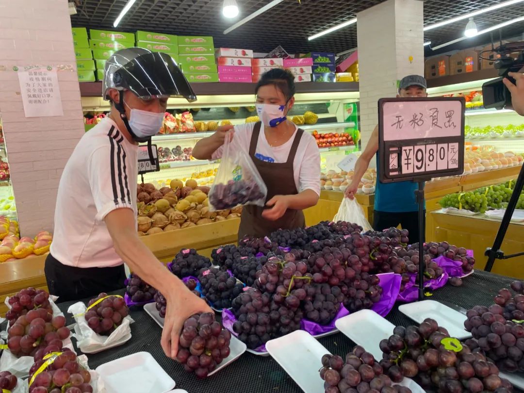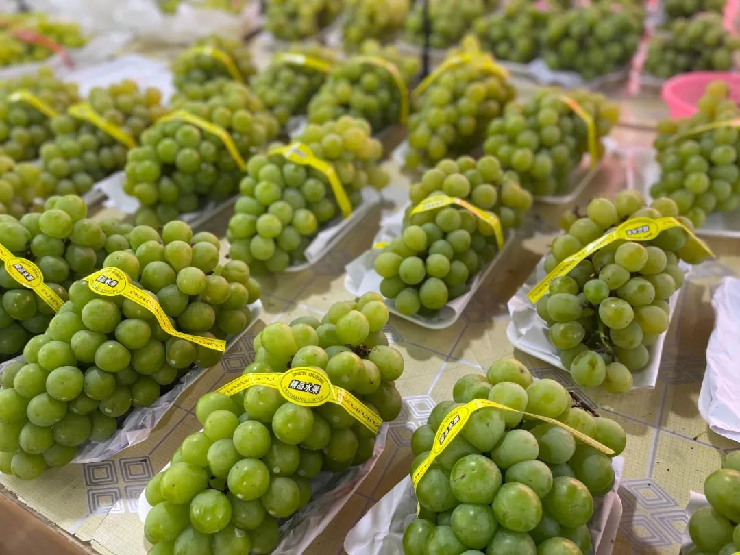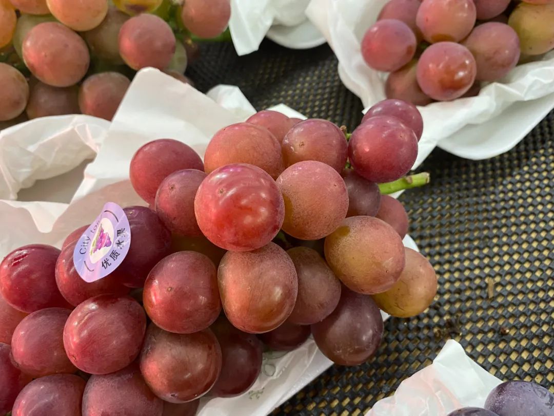 阳光玫瑰和醉金香价格相对高一些,两种葡萄的最低价格都在12.8元一斤,相比半个月前,降了不少。据店长介绍,阳光玫瑰带点玫瑰香味,醉金香带点茉莉香味,其中,阳光玫瑰颗粒硕大,单颗的直径能达到10cm左右,相对来说比较耐保存,存储时间可长达半个月。