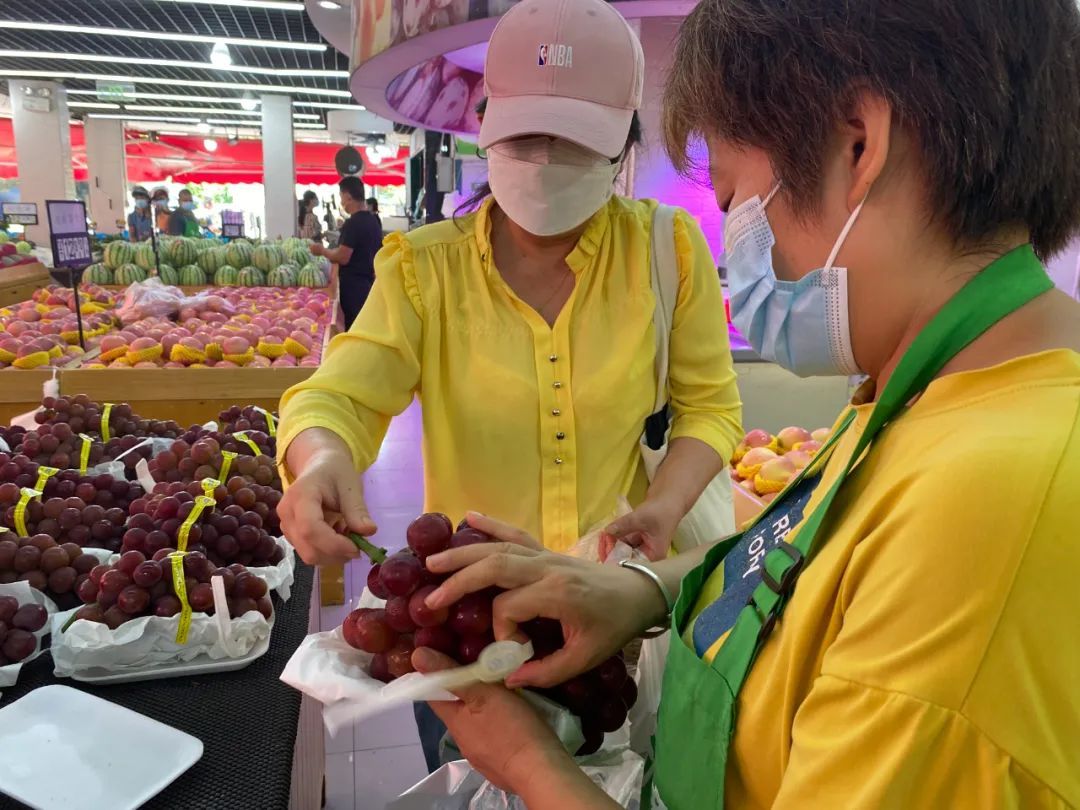 据店长介绍,巨峰葡萄和无籽夏黑甜中带酸,比较受年轻人的欢迎,阳光玫瑰和醉金香,绿中透黄,口味纯甜,老年人和小孩子会比较喜欢吃。