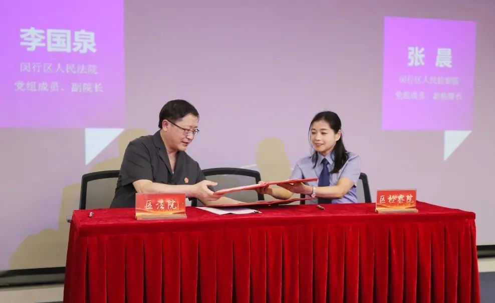 揭牌仪式结束后,进入第二项议程“签约仪式”。由李国泉副院长代表区法院,先后与区检察院、区司法局与区知产局、南滨江公司分别就惩治知识产权恶意诉讼、推进知识产权多元解纷机制以及建设知识产权保护法治宣传教育基地等事项签署三项合作备忘录。三份备忘录旨在加强多方合作,通过执法部门的严格监管、司法机关的公正司法、市场主体的规范管理、行业组织的自律自治、社会公众的诚信守法,共同构建多方参与、协同共治的知识产权保护体系。
