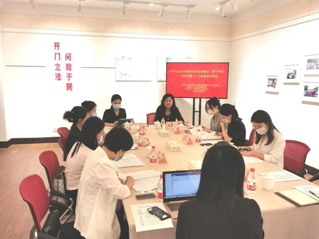 8月24日下午,《中华人民共和国妇女权益保障法》(修订草案)二次审议稿立法意见征询会在古北市民中心举行,会议邀请了市、区两级共8位人大代表参加,这也是全国人大法工委虹桥街道基层立法联系点首次开设人大代表立法意见征询专场。
