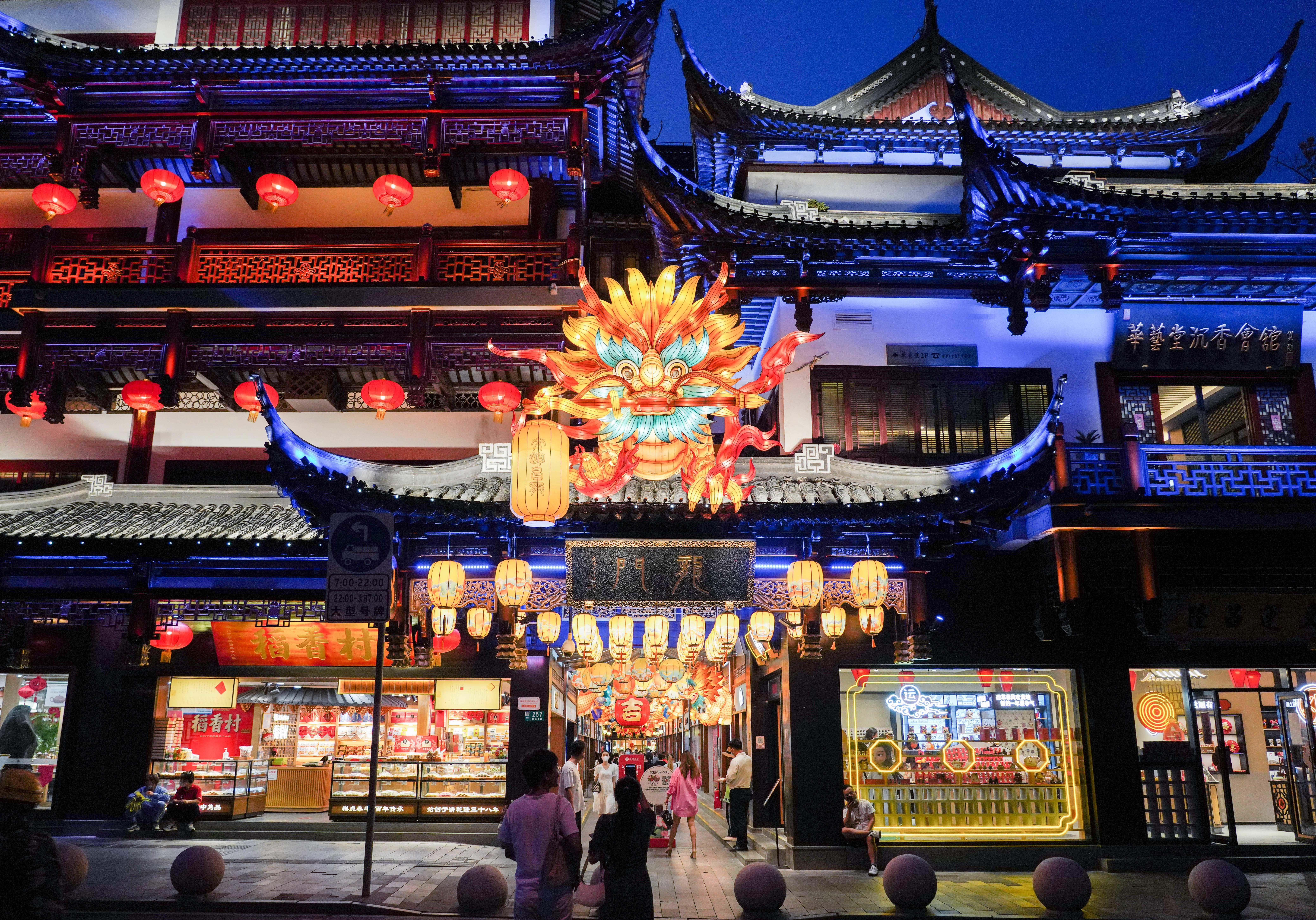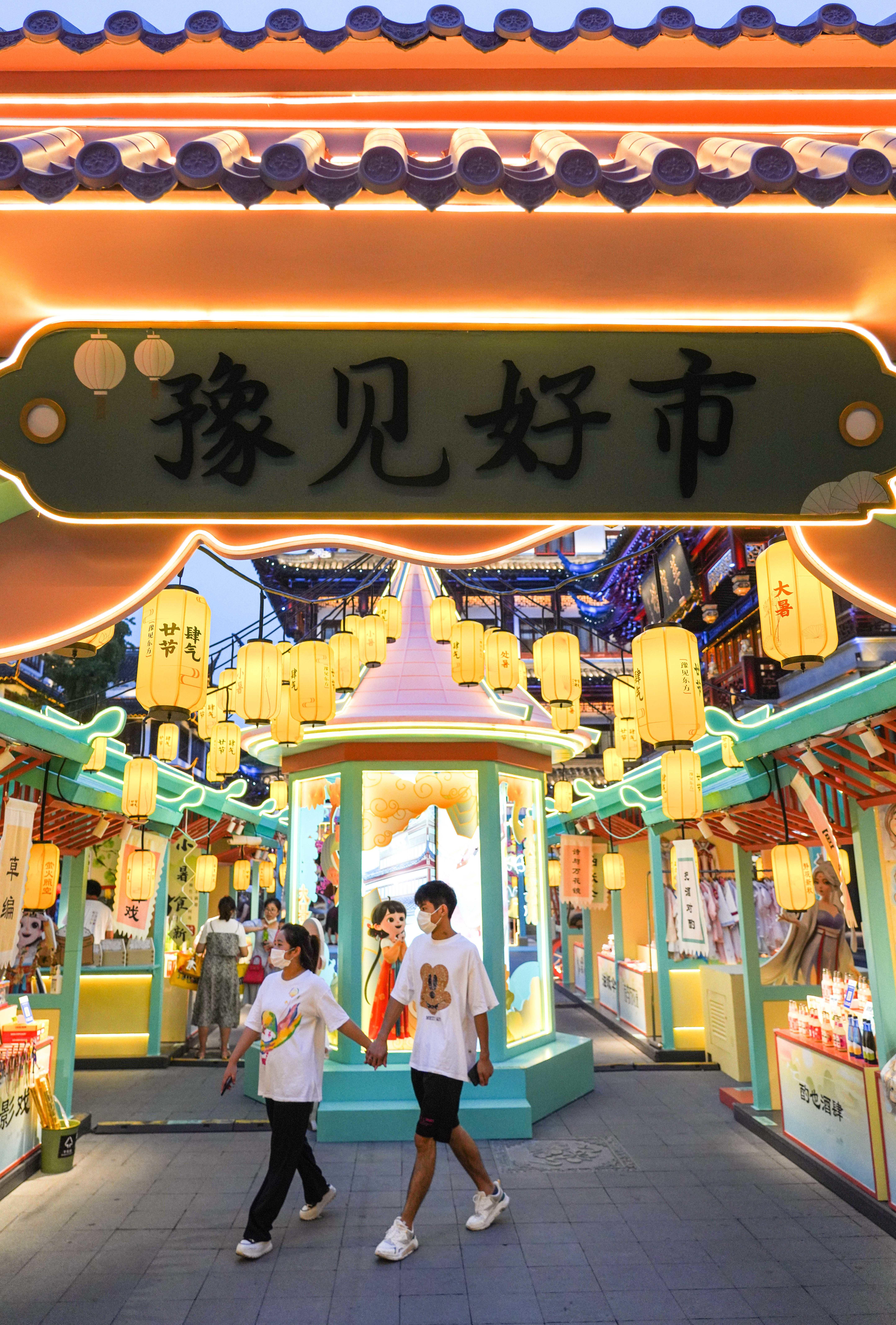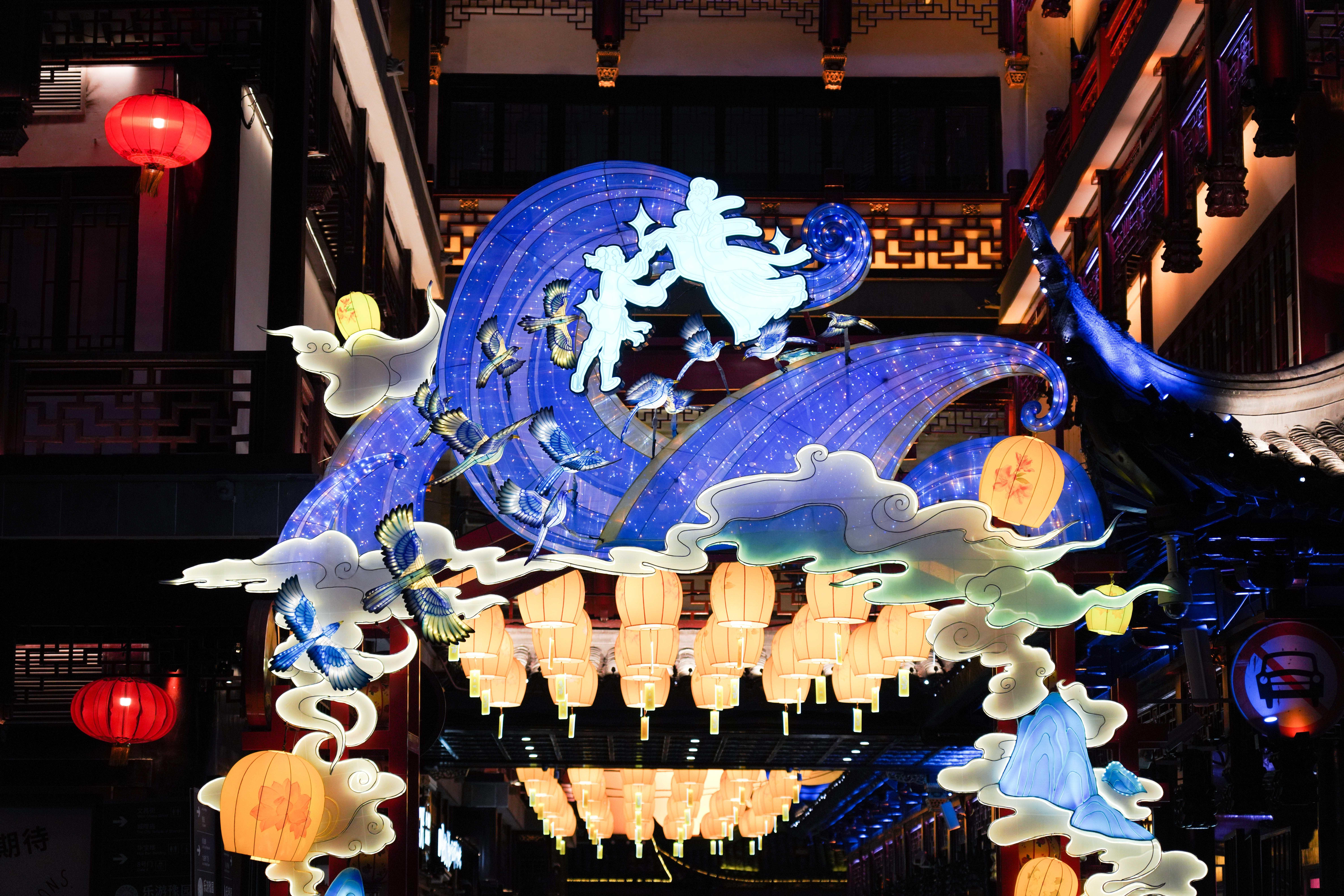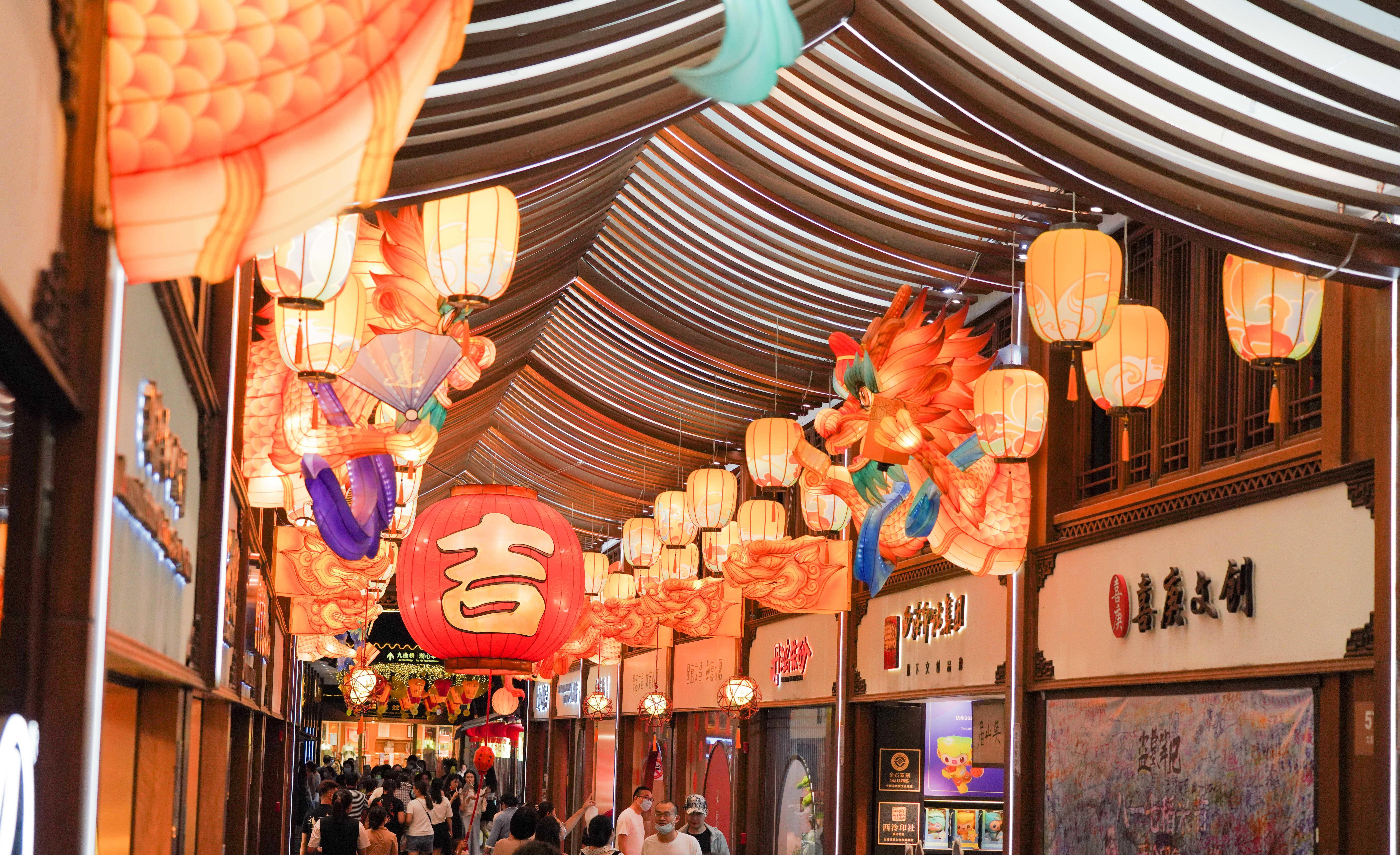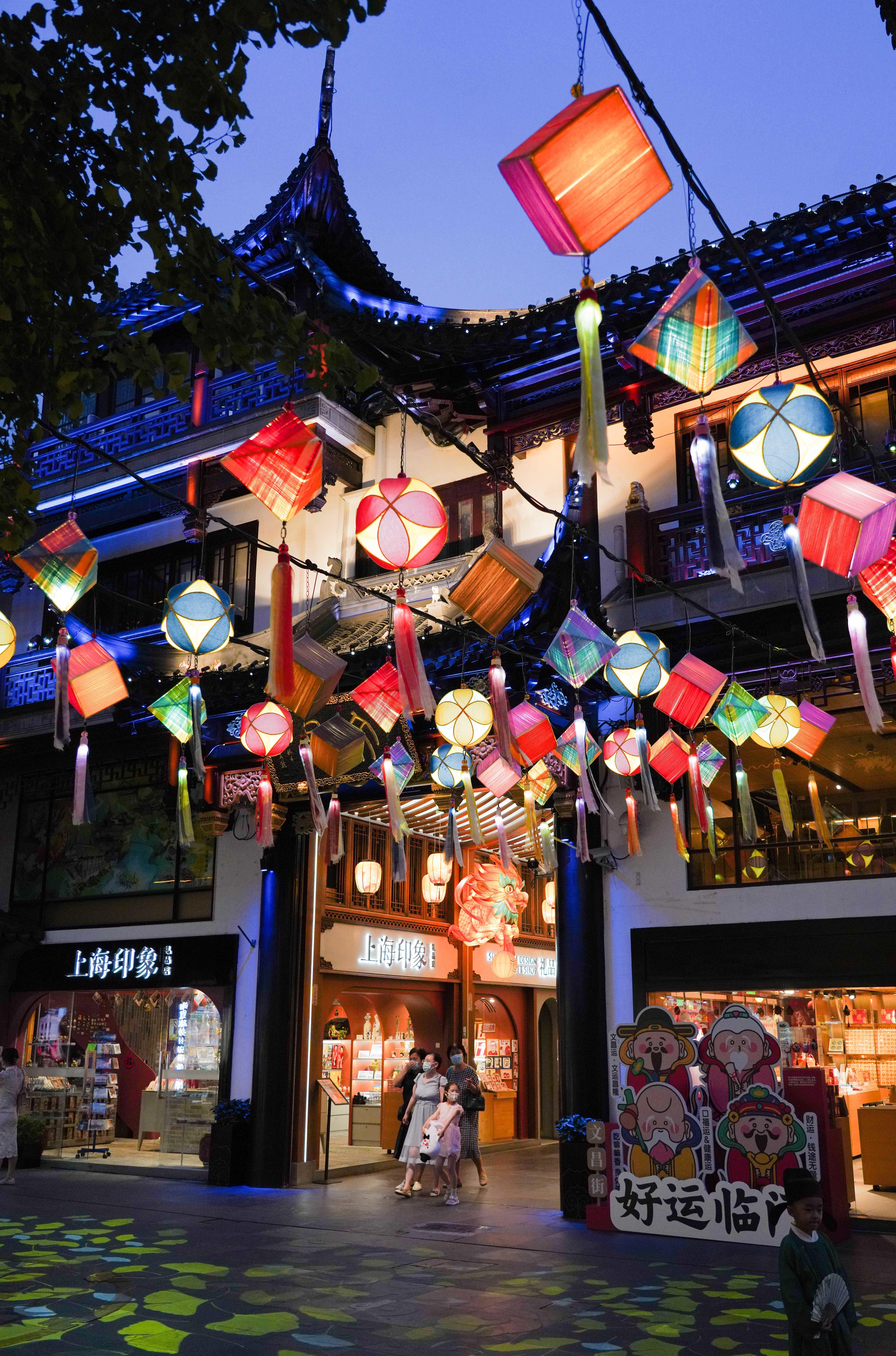 夏日的夜晚,到豫园夏日游园会看花灯逛市集,体验热播“网红剧”《梦华录》场景,别有一番意境。