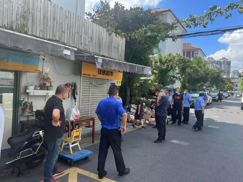 辖区内城管中队、交警二大队率先行动,按照各自职能,开展整治行动。街道管理办、城管中队对芷江西路123弄点位小区内的违法经营、占道堆物以及占用绿化带等问题开展销项整治。