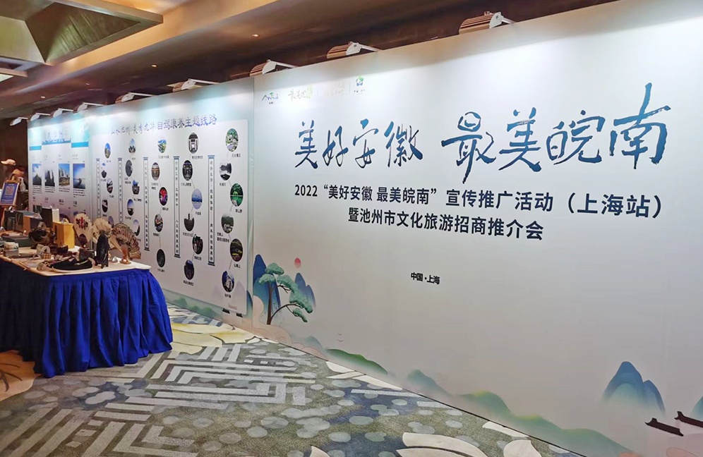 今天(8月25日)上午,由安徽省文化和旅游厅、池州市人民政府主办的“2022‘美好安徽 最美皖南’宣传推广活动(上海站)暨池州市文化旅游招商推介会”在长宁区龙之梦酒店举行。