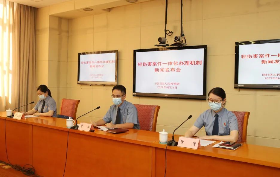 为落实宽严相济刑事政策,依法当宽则宽、该严则严,最大限度减少社会对立面,促进社会内生稳定,日前,上海市闵行区人民检察院召开轻伤害案件一体化办理机制新闻发布会。