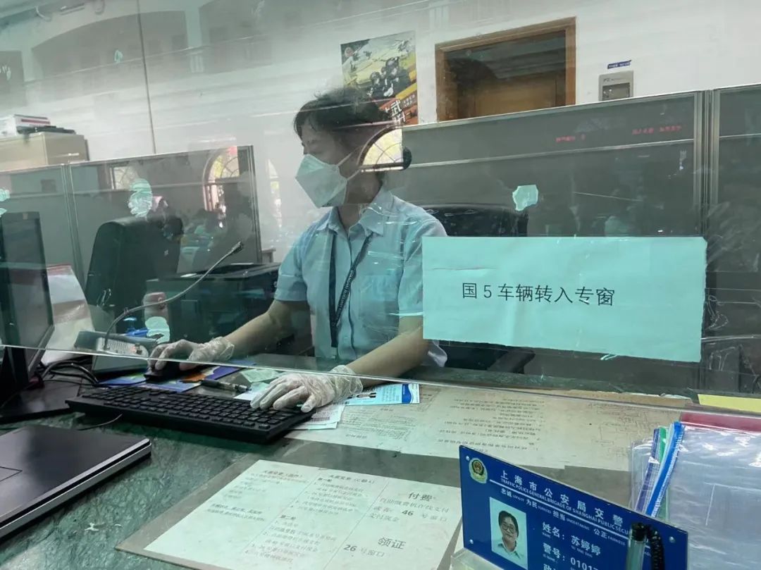 由于受国五放开转入政策和前期市交通委因本市疫情防控出台的客车额度延期到9月1日的政策叠加影响,办理国五车辆转入的业务量一直处于高峰期,车管所在二(闵行区沁春路179号3号门)、三(浦东新区沪南公路2638号)、四分所(宝山区安汾路299号)已开设“专窗”的情况下,又与交通委进行了沟通,在一分所(浦东新区华夏西路2999号)设置了额度审核点,成功加开了国五车辆转入临时“专窗”,方便群众办理。车辆管理所一分所民警黄琦表示,现在这里每天大约要接待20辆左右的国五车办理转入手续,因为需要经过核对车辆环保信息、交通委额度确认、车辆验车等较多环节,所以办理一辆国五车转入需要一定时间,民警也提醒前来办理的车主应合理安排时间,错峰办理,切勿扎堆,配合现场疏导指挥。