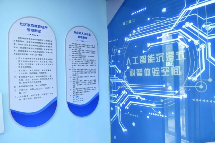 家门口的新时代文明实践,可以是形式多样、丰富多彩的。在惠南镇颐景园小区,新时代文明实践站建设结合辖区居民需求,打造了一个集人工智能展示、产品体验、互动交流的专题性科普体验空间——“小试界”科技体验站。