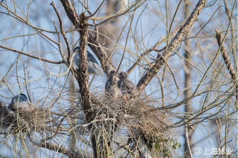 夜鹭通常在寒冬就开始搭建修复爱巢,为繁殖做准备。有的亲鸟二月份就已经孵卵,等到春天的脚步越来越近的时候,夜鹭宝宝已经出生啦。