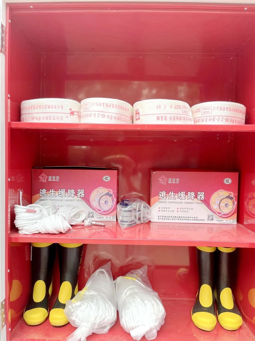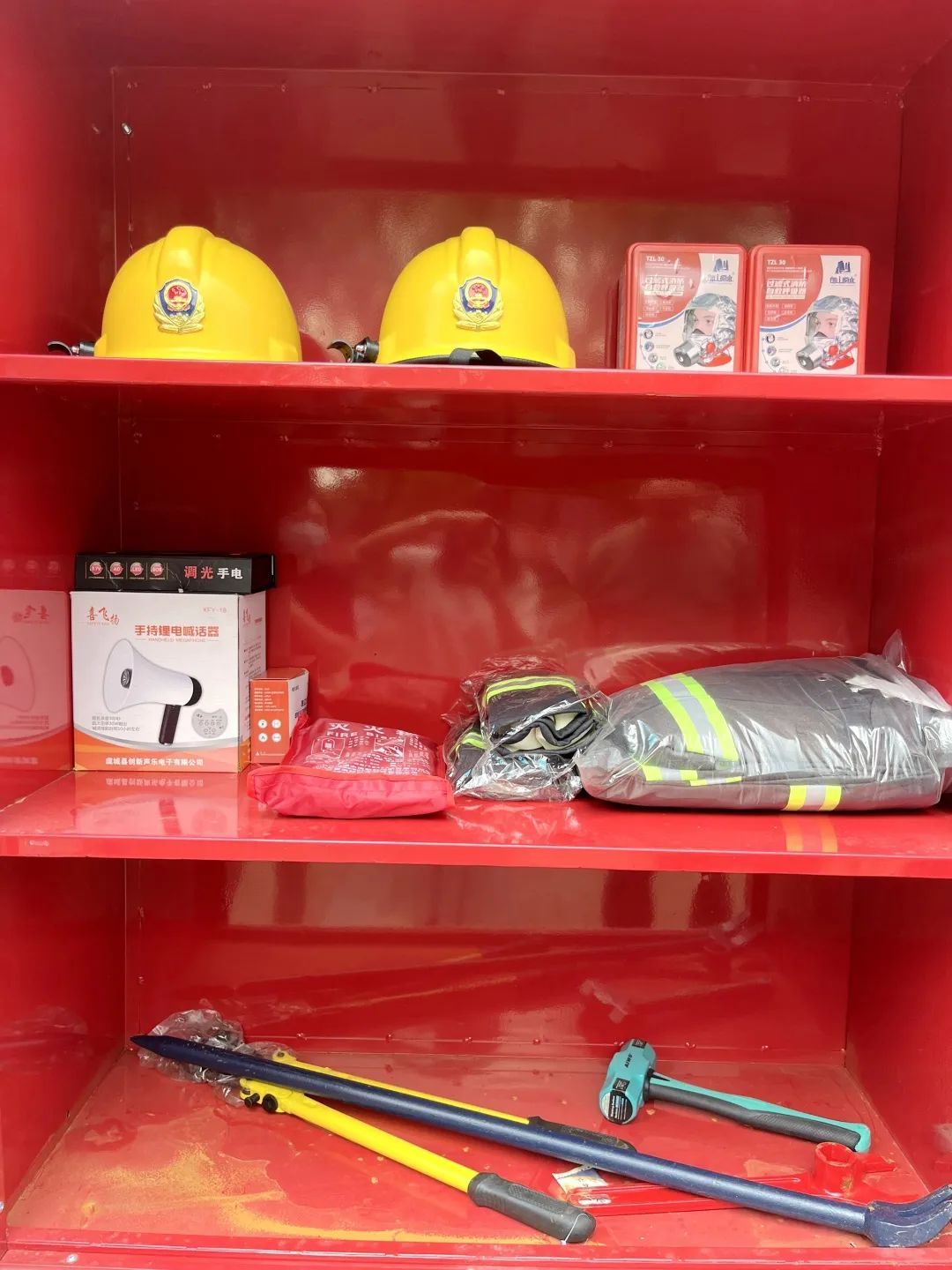 为迅速应对火灾,微型消防站其实早已覆盖全镇各村居,但大部分微型消防站设立于居委、物业办公室内,一旦办公室门一关,微型消防站就形同虚设,无法取用灭火设备。而新型社区综合服务站不同,设立于小区门口、中心等显要位置,配备有灭火器、灭火毯、缓降器等火灾初期扑救的救援工具,全天候供灭火使用。