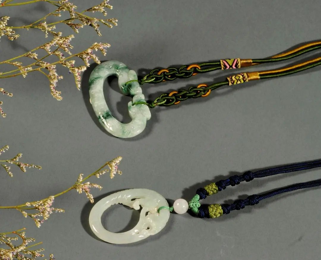 此件玉石吊坠便以此为灵感来源,选用翡翠材质,玉质晶莹剔透,打磨精细。