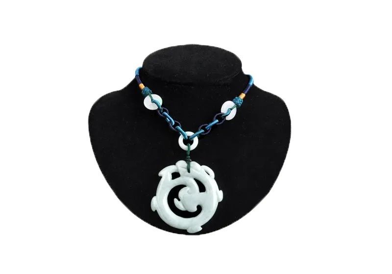 而这件西汉蟠龙玉环饰项链上的蟠螭屈身卷尾,造型刚健。选用上好翡翠材质,手感柔滑细腻,图案精美雅致,线条流畅,是自用、收藏或馈赠亲友的理想选择。
