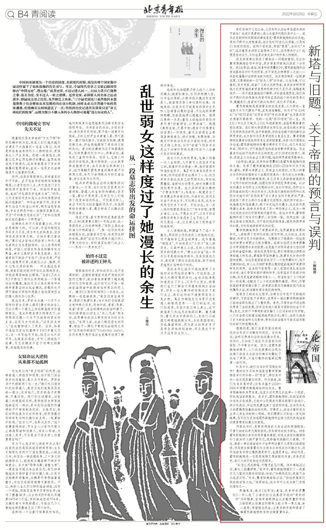 以下书评内容转自《北京青年报》文艺评论版(2022年8月26日),本文作者:顾晓祺(《论帝国:美国、战争和世界霸权》译者),编辑:罗皓菱。