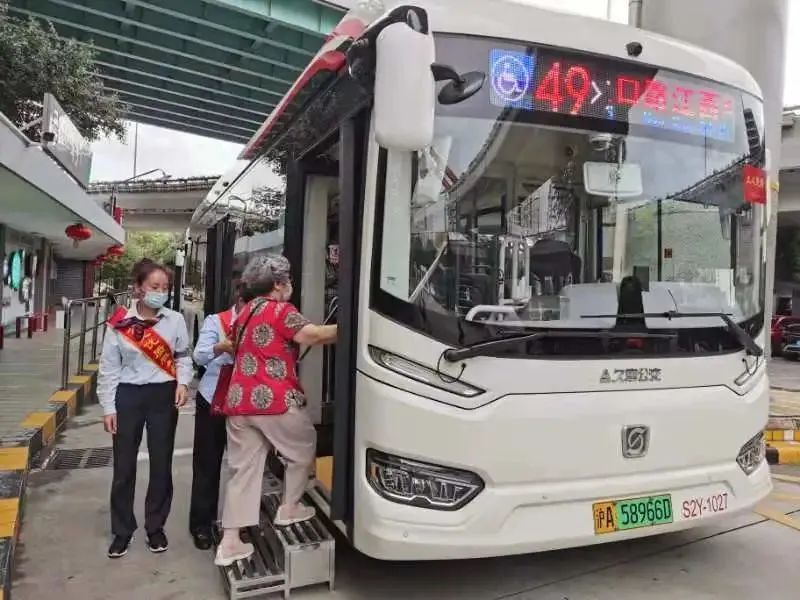 49路是一条名副其实的敬老专线,老年乘客占了相当大的比例,而目前使用的“白金刚”公交车前门踏板离地高度约30厘米,这一高度对老年人来说略微有些吃力。一个小小的服务举措,体现出上海公交的人文关怀。