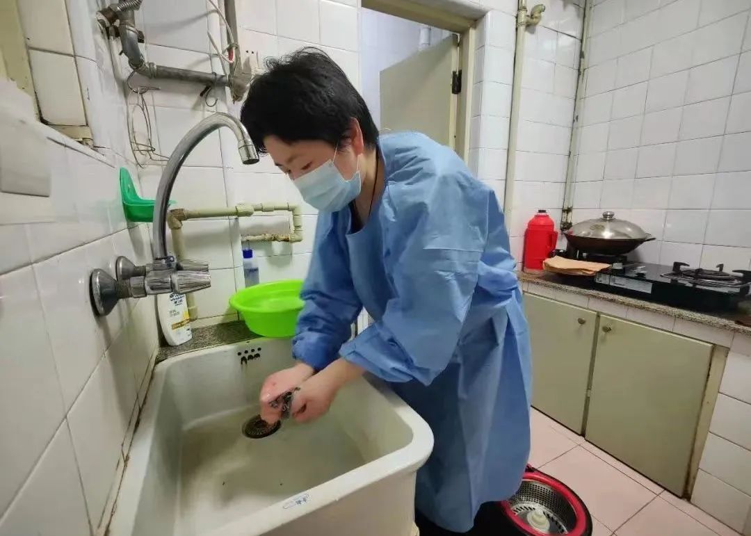 给朱阿婆洗头、洗澡、换好衣服后,杨梅叮嘱老人坐在床边休息,自己赶紧将卫生间的水渍清理干净,清洁完马桶后再拖地擦地,然后将朱阿婆换下来的脏衣服洗好晾好。