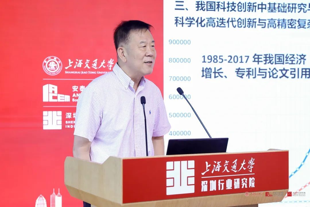 主旨演讲环节,上海交大安泰经管学院院长、深圳行业研究院院长陈方若进行了主题为《深圳行业研究院——在创新的热土探索新商学模式》的主旨演讲。他指出,粤港澳大湾区是中国开放程度最高、经济活力最强的区域之一,在国家重大发展战略等的推动下,这一区域正愈来愈成为产学研协同创新的重要基地。希望交大安泰能将“纵横交错、知行合一”的战略优势与粤港澳大湾区的创新创业背景相结合,成就学术研究与行业研究交错发展、相辅相成的新局面。陈方若表示,深圳行研院未来将紧密结合深圳乃至大湾区的产业布局,在服务社会、政府、企业和教学科研上做出更大的贡献。