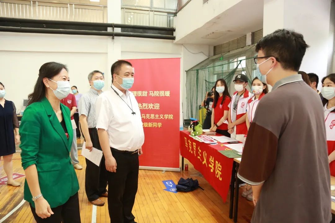 校长金力、校党委副书记尹冬梅来到邯郸校区新生接待点,看望前来报到的研究生同学,了解报到注册情况,慰问服务在迎新一线的各院系和部处工作人员。研究生院、研工部等相关部门负责人陪同。