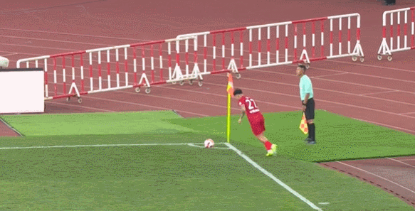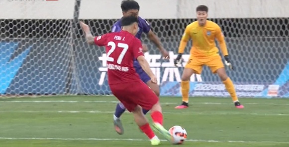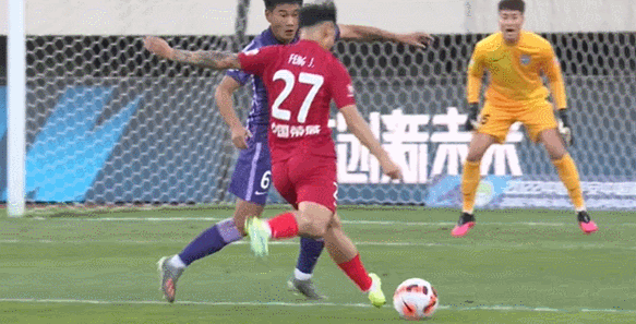 补时阶段,张华晨单刀面对门将推射,球击中立柱内侧弹入球门。