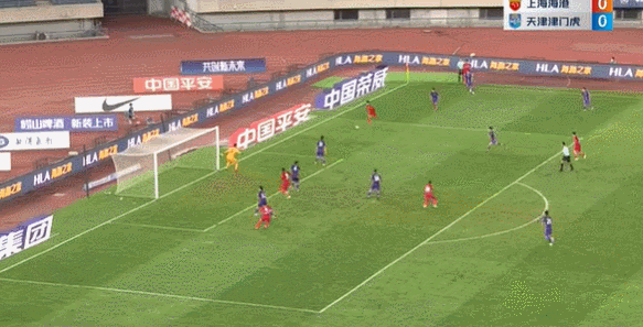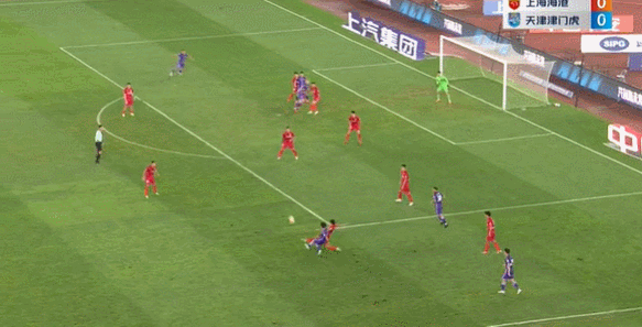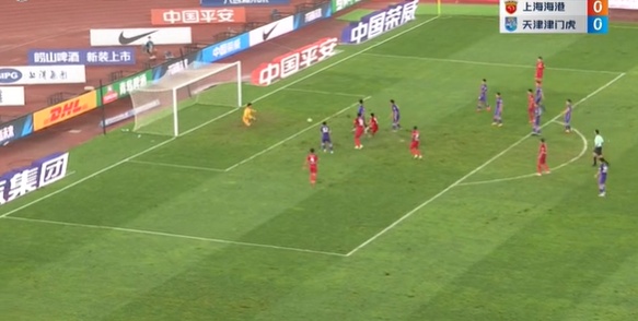 上半场上海海港0:0天津津门虎。