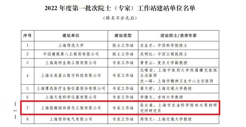 据了解,上海佰麟园林绿化工程有限公司与上海市农业科学院林果所所长张永春为首席专家的团队签署专家工作站合作协议,建立专家工作站,柔性引进高层次人才,以项目为纽带,通过研究探讨、技术交流和专题讲座等形式,提升技术人员的理论水平和实践技能,培养高素质的研发和技术人才。