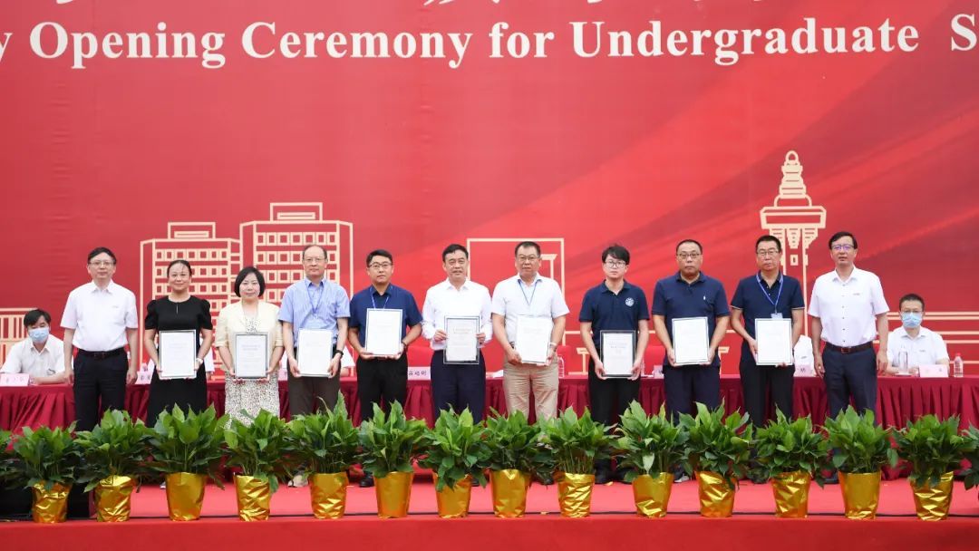 学校还特别邀请了全国部分知名中学校长来校参加今年本科新生开学典礼。校党委书记方守恩、校长陈杰向当天参加典礼的9所中学校领导颁发感谢证书,感谢以这些中学为代表的全国各地中学为同济源源不断输送优质生源,希望今后携手推进大学教育和中学教育更加紧密有效衔接,共同为国家培养一流人才。来自这些中学的新生代表向母校老师献花致谢。