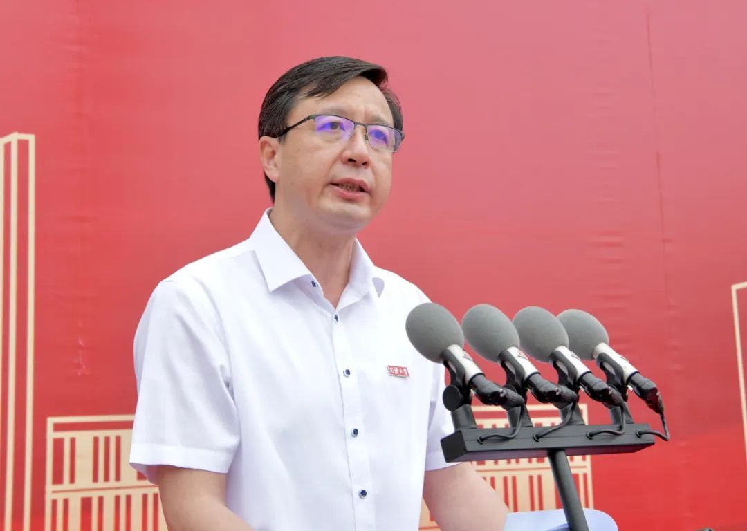 环境科学与工程学院院长王志伟作为教师代表发言。“学习仍然是大学生活的主旋律,大学阶段的学习不仅仅是狭义的学习知识,更是学习能力的提升和人格的养成。”他讲述了23年前以优异成绩考入同济、在同济相继完成本硕博学习、毕业后在校从事教学科研的经历,表示其个人成长深深植根于环境学科和国家环保事业发展,希望同学们同怀理想,胸有担当;同行不辍,笃志前行;同期未来,济向山海,在同济的奋斗中展现青春光芒。