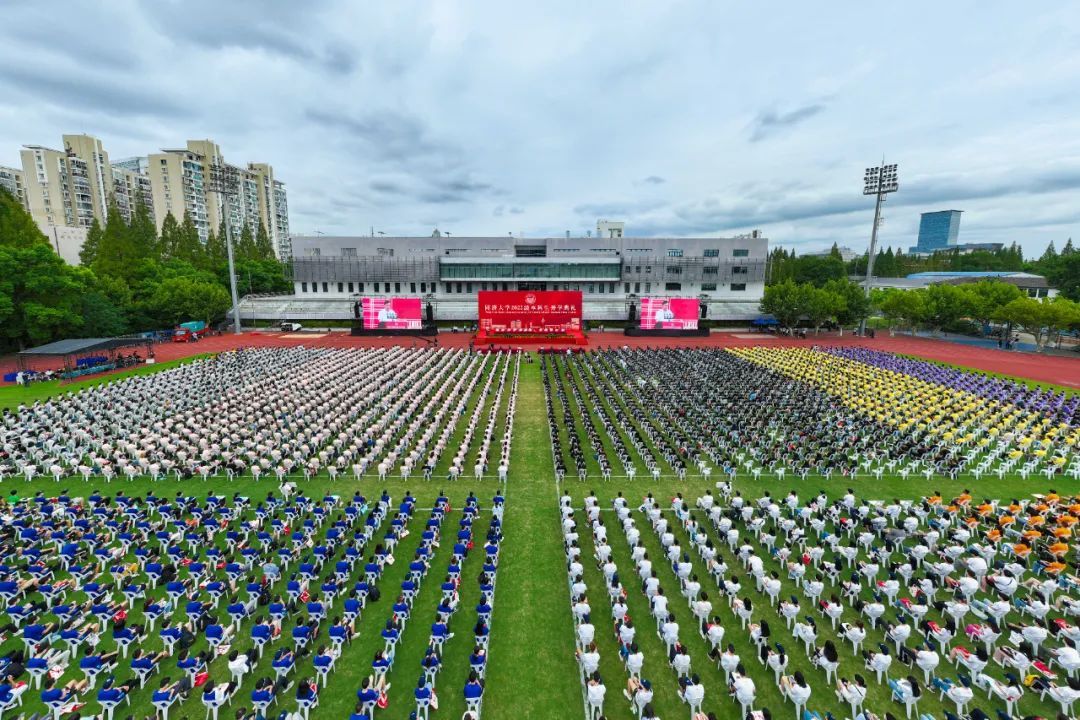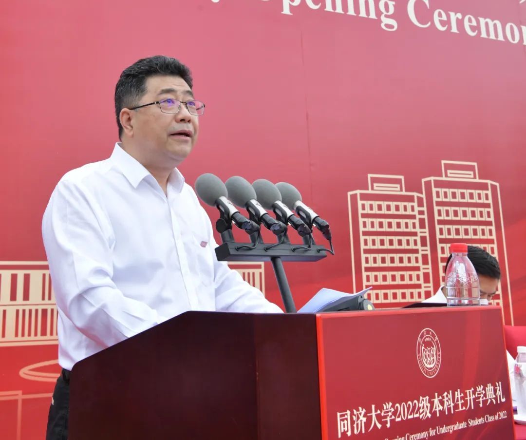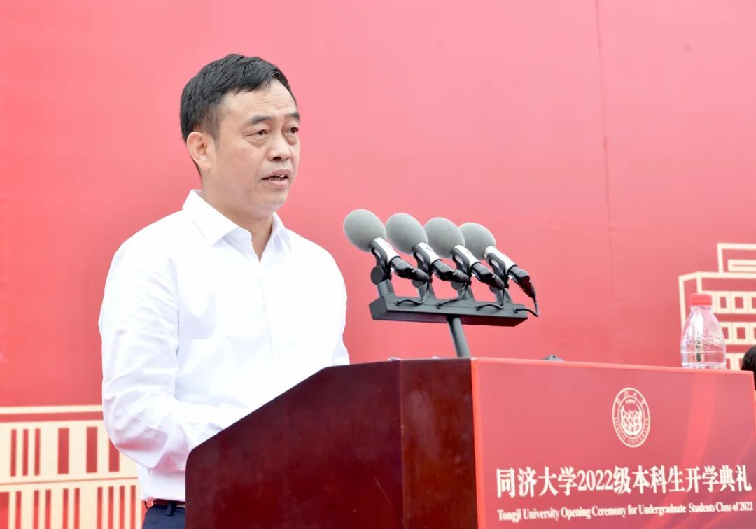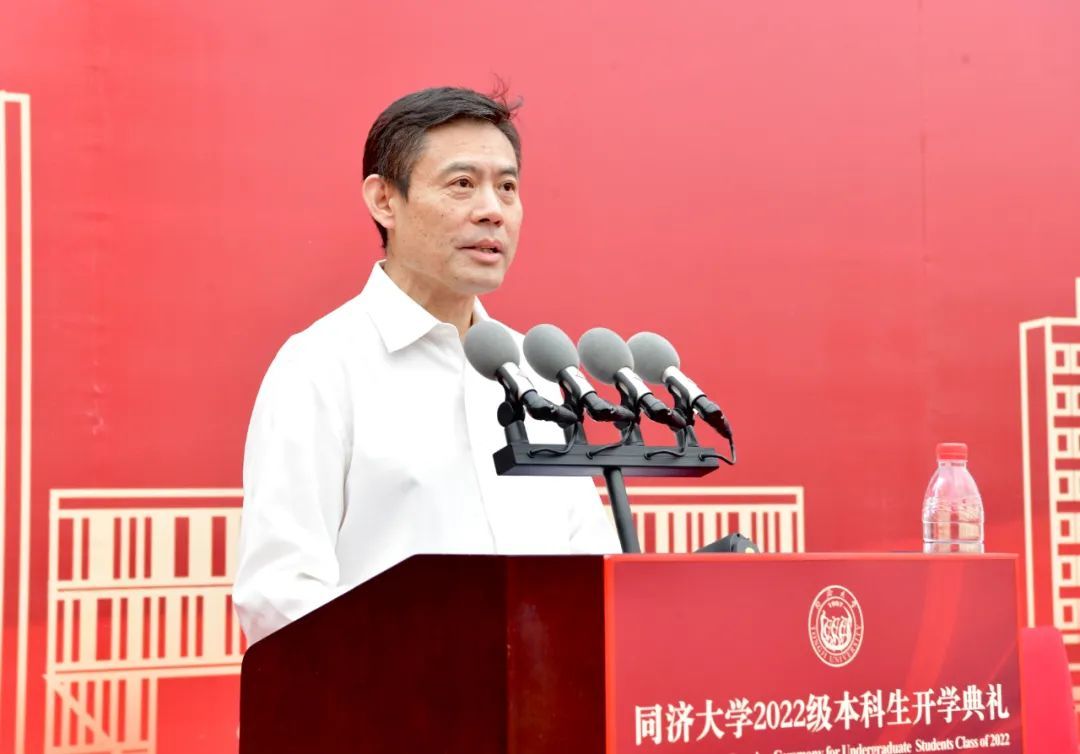 上午8时许,开学典礼在雄壮的国歌声中开幕。陈杰发表了题为《踔厉奋发,勇毅前行,让奋斗成为人生底色!》的讲话,代表全校师生员工向来自全球各地的4497名本科新生表示最热烈的欢迎,并殷切寄语本科新生。他指出,选择了同济,就是选择了梦想与执着,肩负起“与祖国同行、以科教济世”的责任担当。在同济,你们可以慎思畅想,凝思浩瀚星空,层积人生智慧,滋养科学信仰,砥砺青春梦想。选择了同济,就是选择了拼搏与奋斗,在未知和挑战面前,踔厉奋发、勇毅前行。“人工智能+”领域正期待着新的同济人,用只争朝夕的紧迫感和使命感,攀登科学高峰,向着未知和前沿的深处不断进军。选择了同济,就是选择了认同同济的育人理念,努力成长为担当民族复兴大任、引领未来的社会栋梁与专业精英,做擎天柱。学校期待与同学们一道,共同成长,将持续为国家战略和地方建设提供强有力的科技支撑和人才支撑,为实现中华民族伟大复兴中国梦接续奋斗。