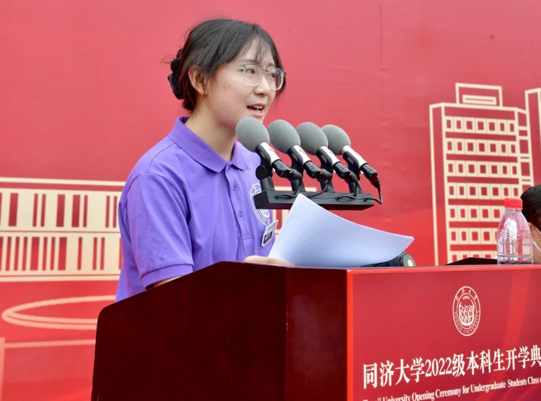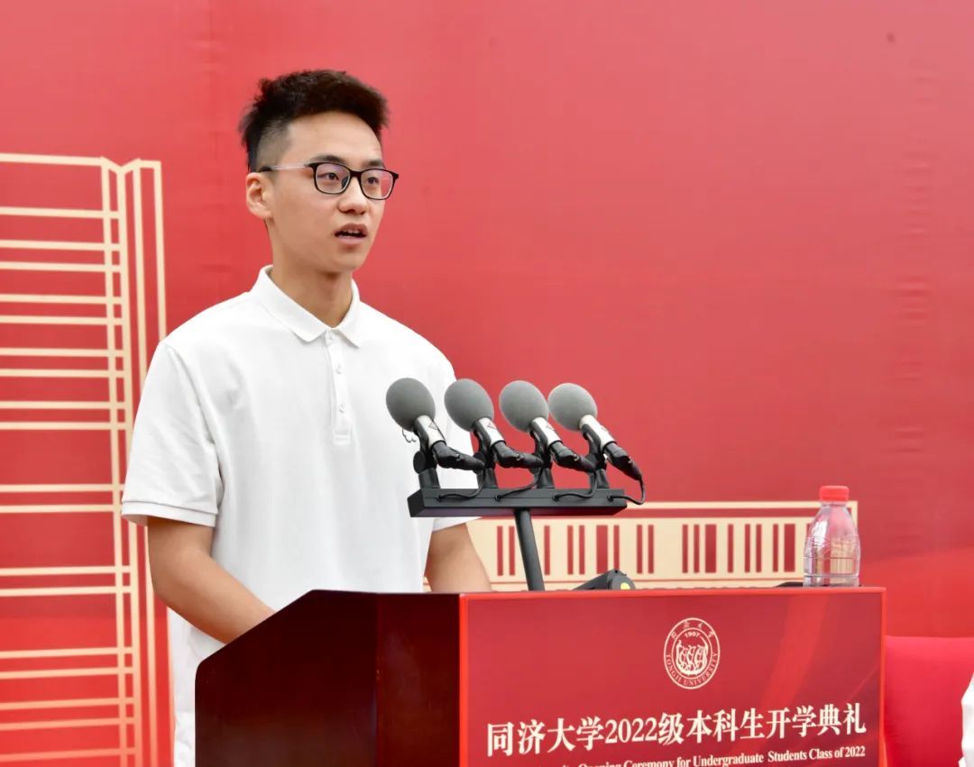 国豪书院2022级本科生赵欣蕊作为本科新生代表发言。“每所高校都有其独一无二的名片。我想,属于同济的,必然是‘与祖国同行、以科教济世’的传奇故事。这正是我在高考志愿上写下‘同济大学’最骄傲的理由。”她说,在同济,她将继续努力、不忘初心、勇敢追梦,放手去追寻自己的热爱,为成为社会栋梁和专业精英而倾尽全力,肩负起属于同济学子的使命与担当。