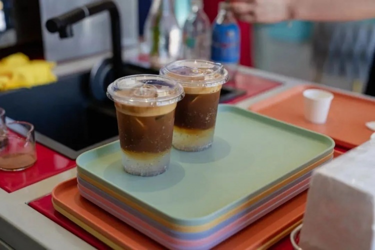 店里最特别的当属专门研发的“红火箭特调”!“特调1号”是一款含酒精咖啡饮品,加入蓝柑糖浆后,成品呈现蓝色分层,契合“航天蓝色,寄托航天梦”的元素。