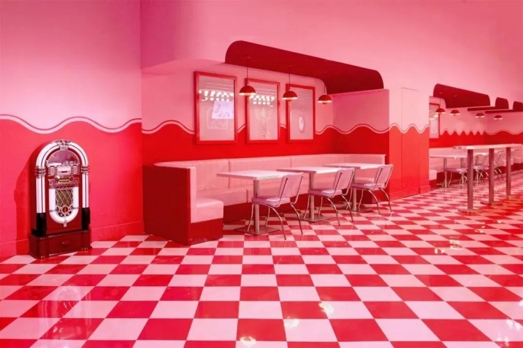 在这里可以穿越粉色车厢、向着冰淇淋树许愿、坐上粉色旋转木马、或流连彩虹隧道……