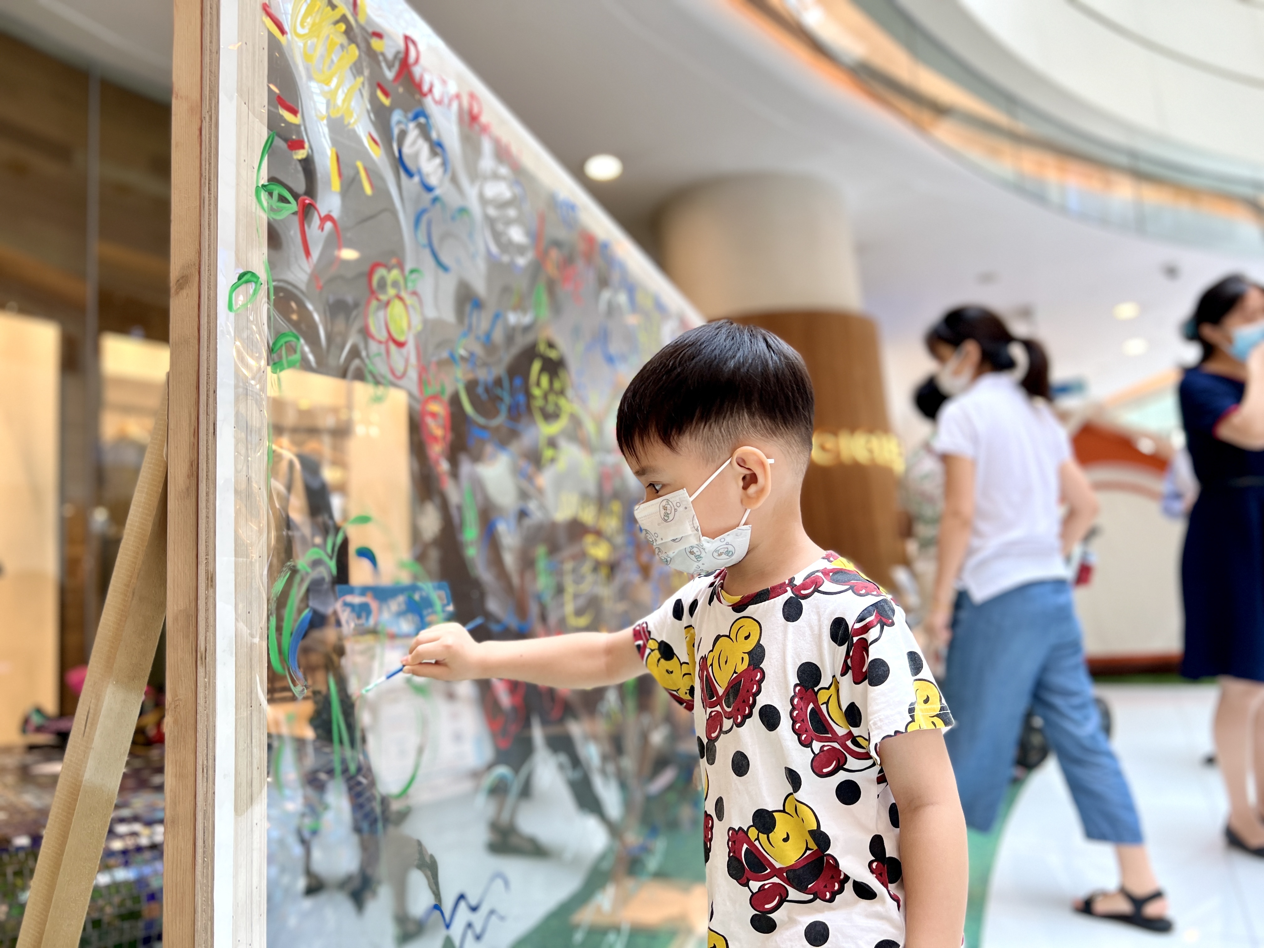 一旁的家长当起了他的小助手,时而帮忙传递颜料,时而给出建议指导……现场不少家长更是在充当“小助手”之余,向记者表示,平日工作忙碌,很少有时间可以陪孩子一起创作,有这样的机会更显得弥足珍贵。