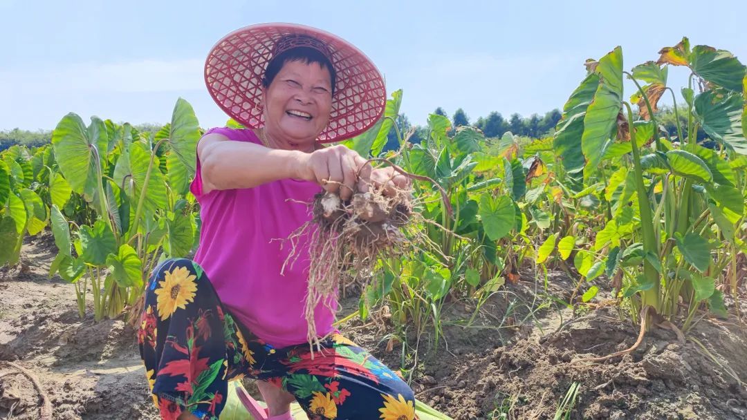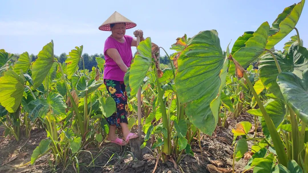 记者来到绿湖村村民黄阿姨家中,她和丈夫周老伯种植芋艿已有十多年的时间。作为资深芋艿种植户,他们经验老道,纵使今年雨量较少,他们的收成也几乎未受影响。